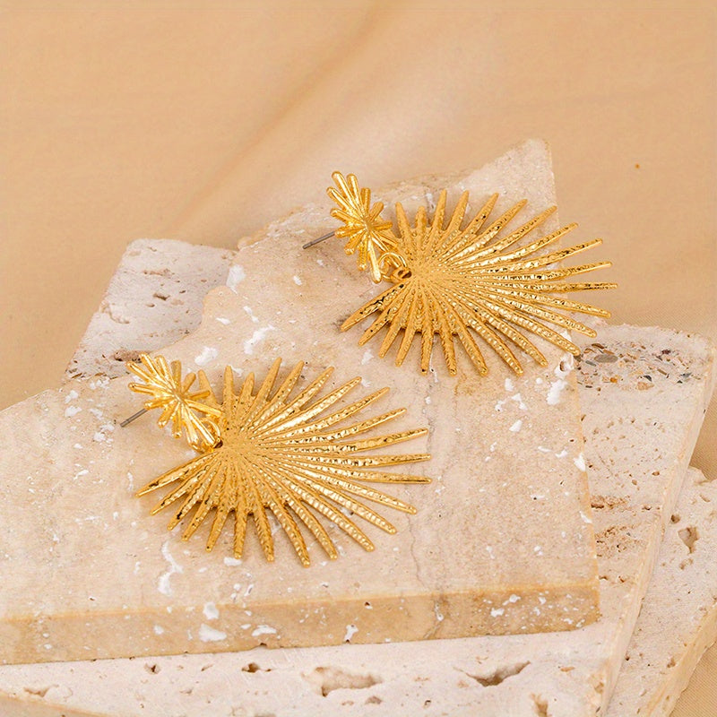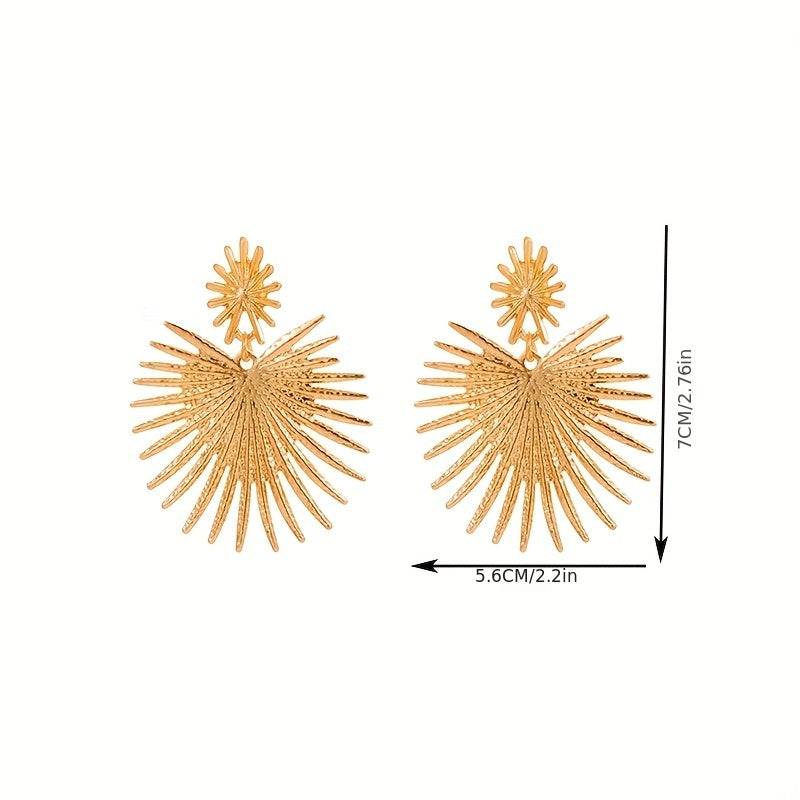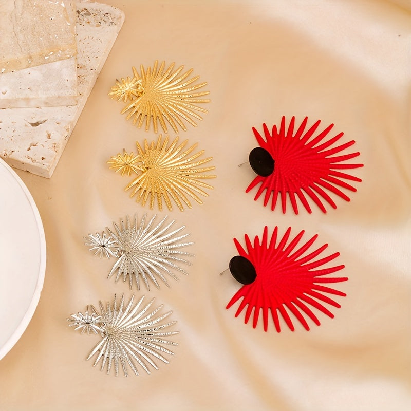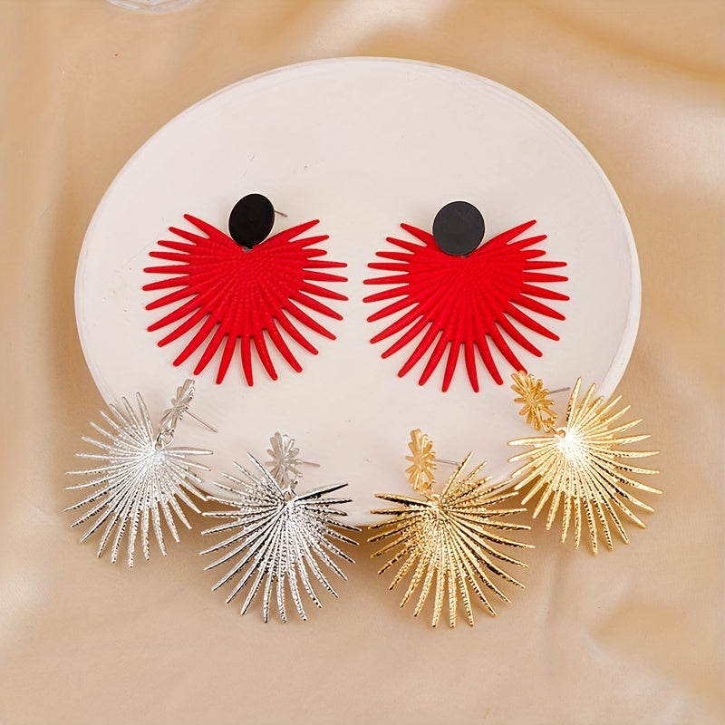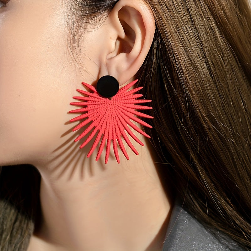 These exaggerated fan shape dangle earrings are perfect for adding a touch of hip hop punk style to your daily wear. Made of iron, these earrings make a great gift for women.