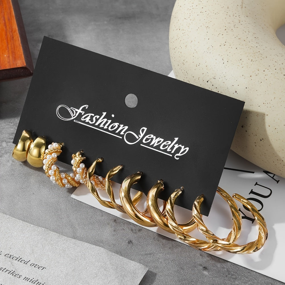 This set includes 5 pairs of elegant twist faux pearl earrings, perfect as a gift for women and girls.