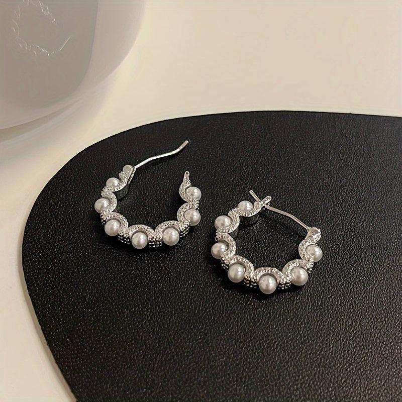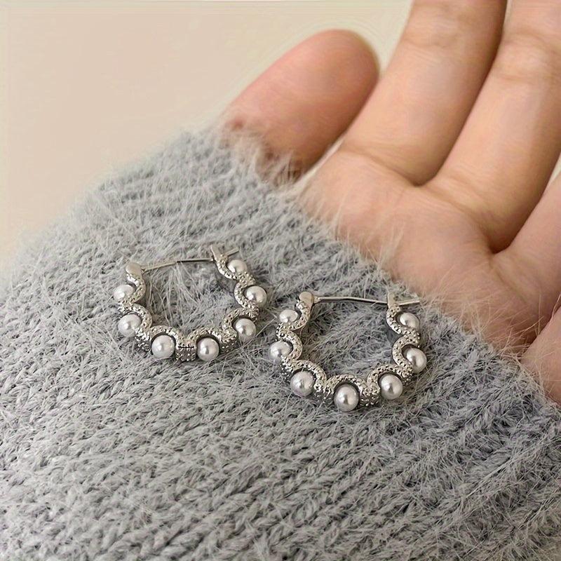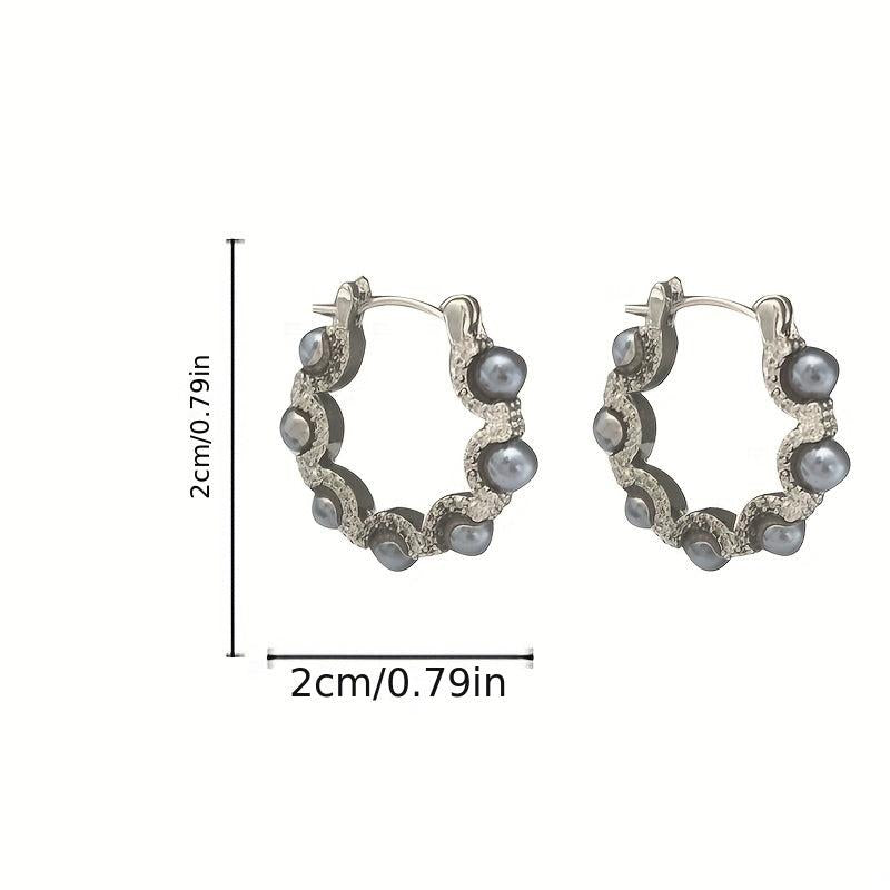 These vintage-inspired earrings feature faux pearls on 925 silvery posts, perfect for daily wear or special occasions. The unique circle design adds a touch of elegance to any outfit.