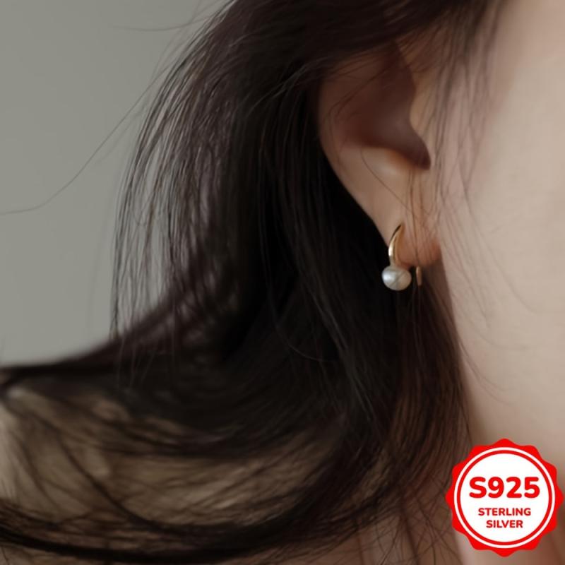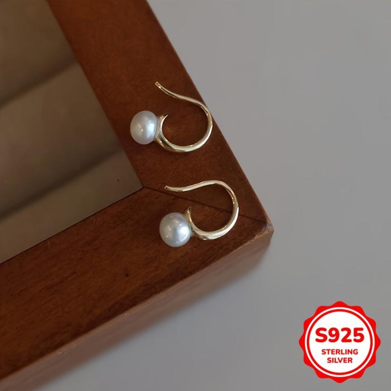 These elegant S925 sterling silver earrings feature faux pearls, perfect for weddings, engagements, birthdays, and holidays.