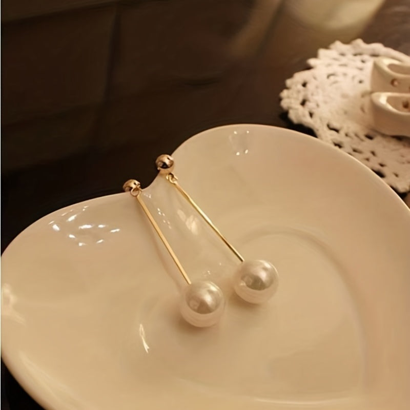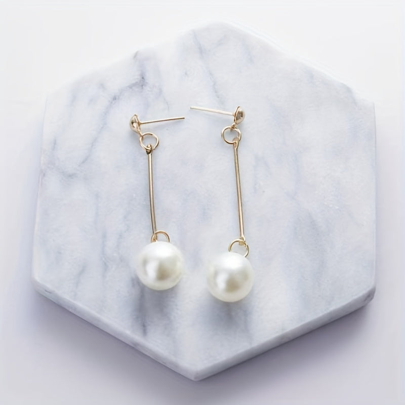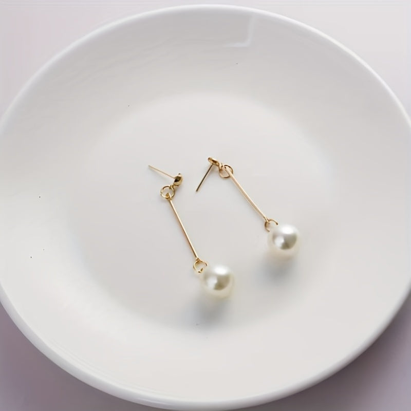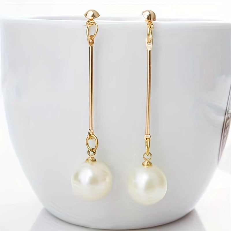 These long dangle earrings feature faux pearl decoration, perfect for daily casual wear. Ideal for women and girls as a delicate gift.