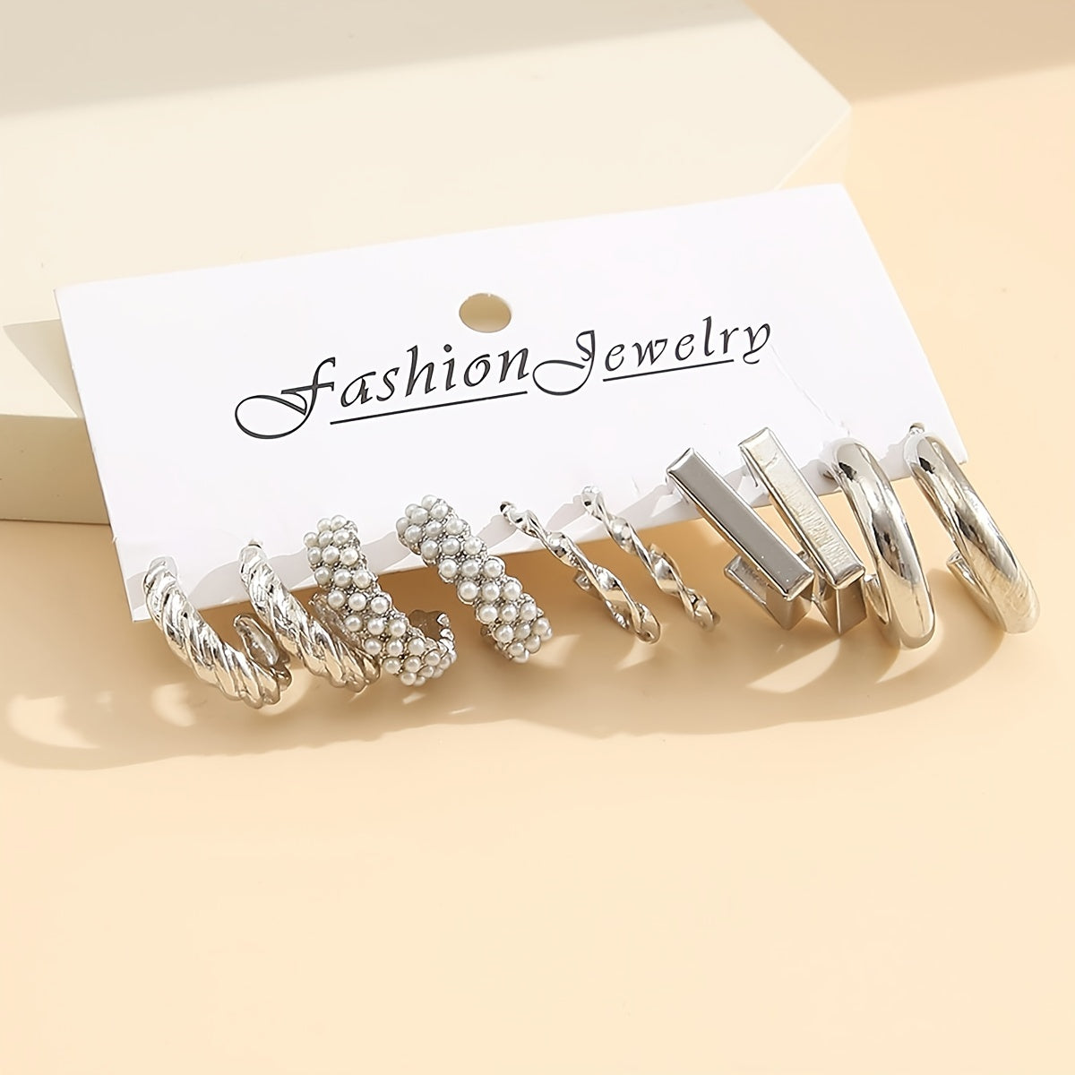 Add a touch of elegance to your look with these faux pearl geometric metal earrings. Perfect for banquets, parties, or everyday wear.