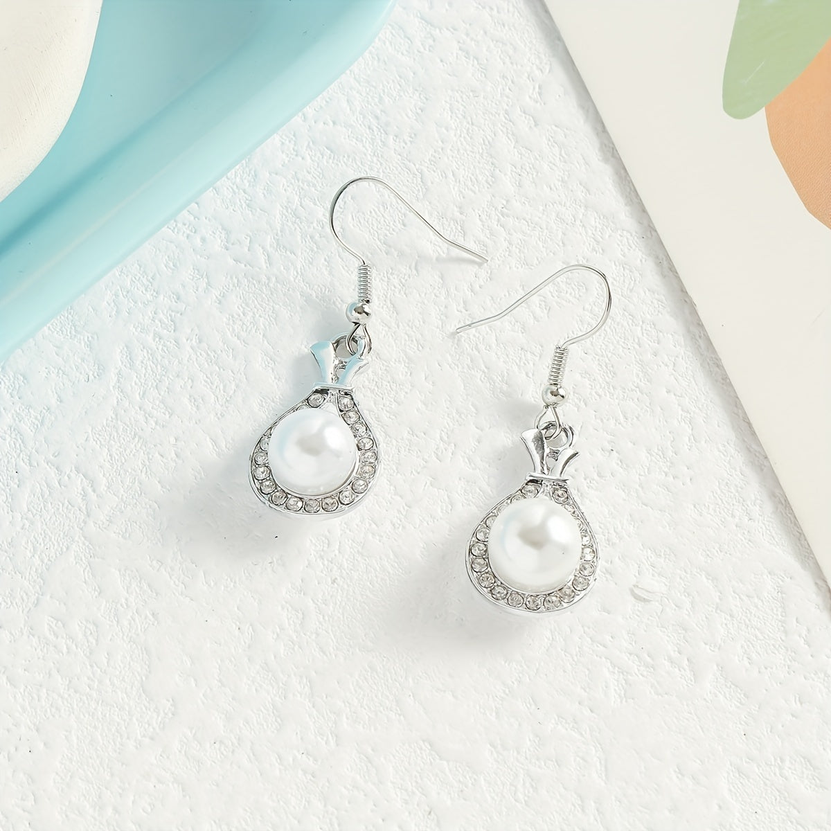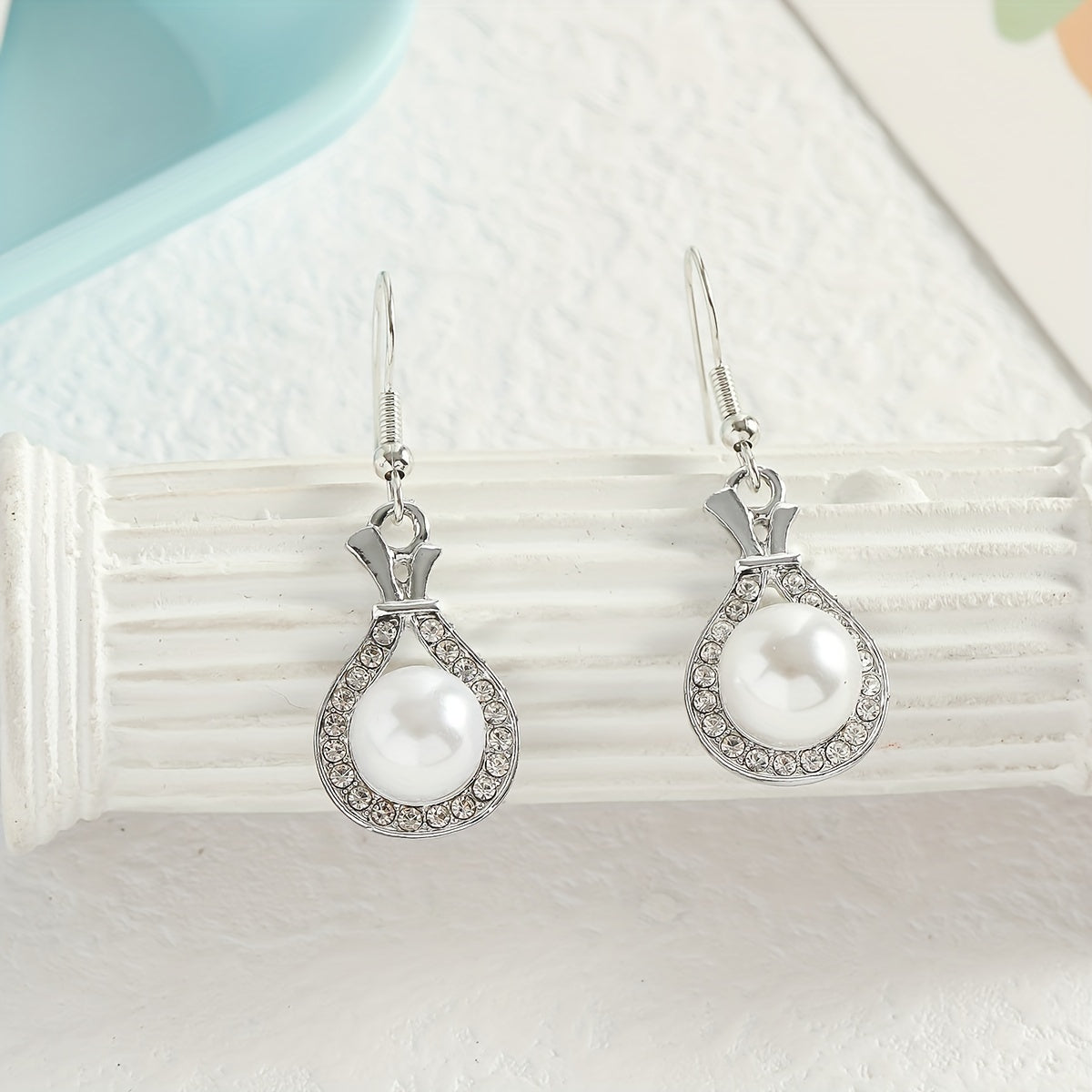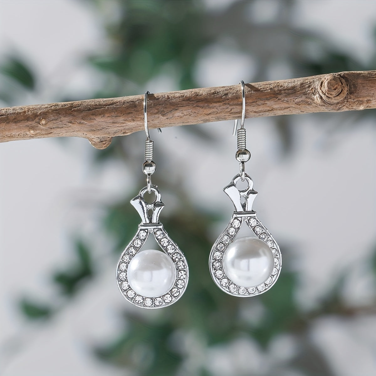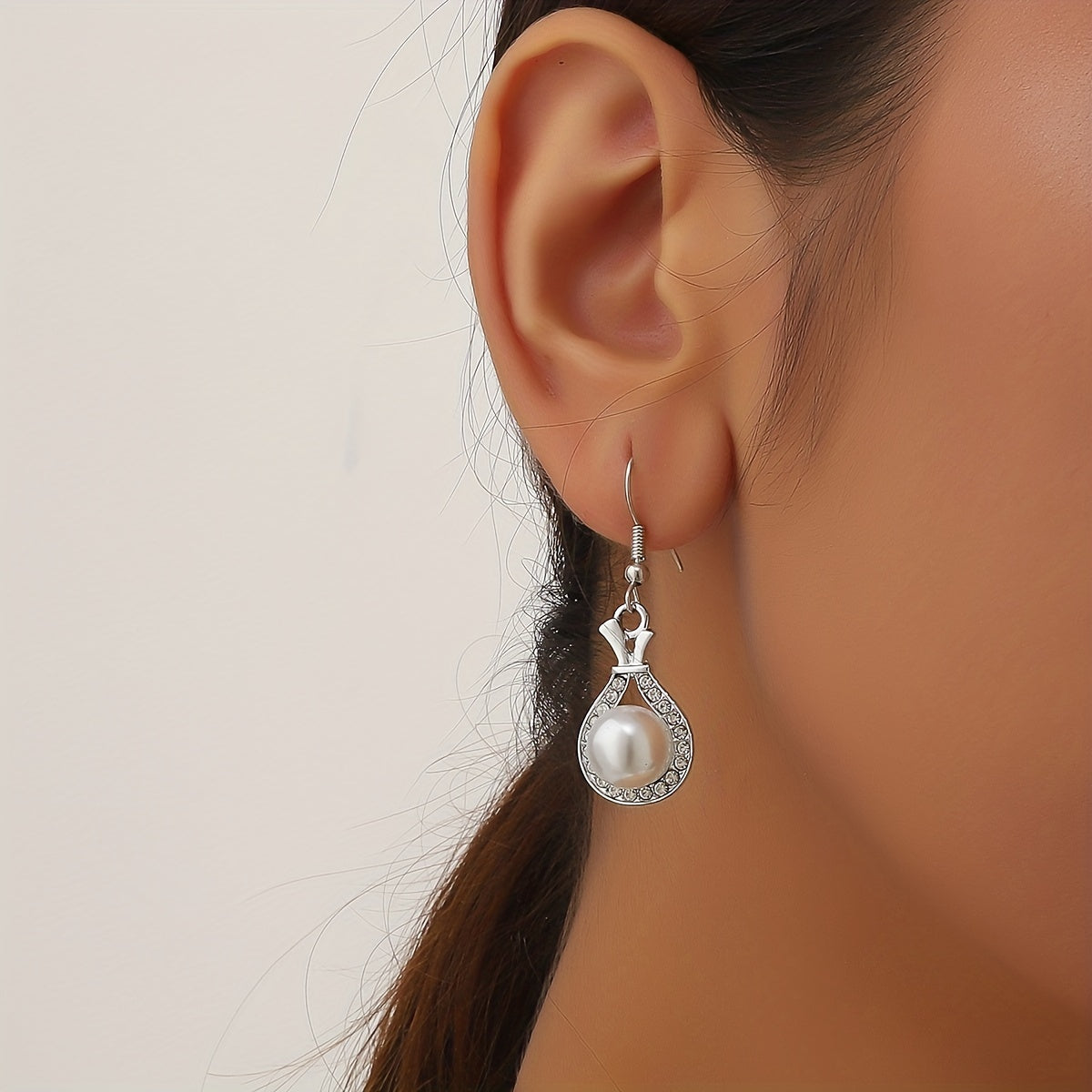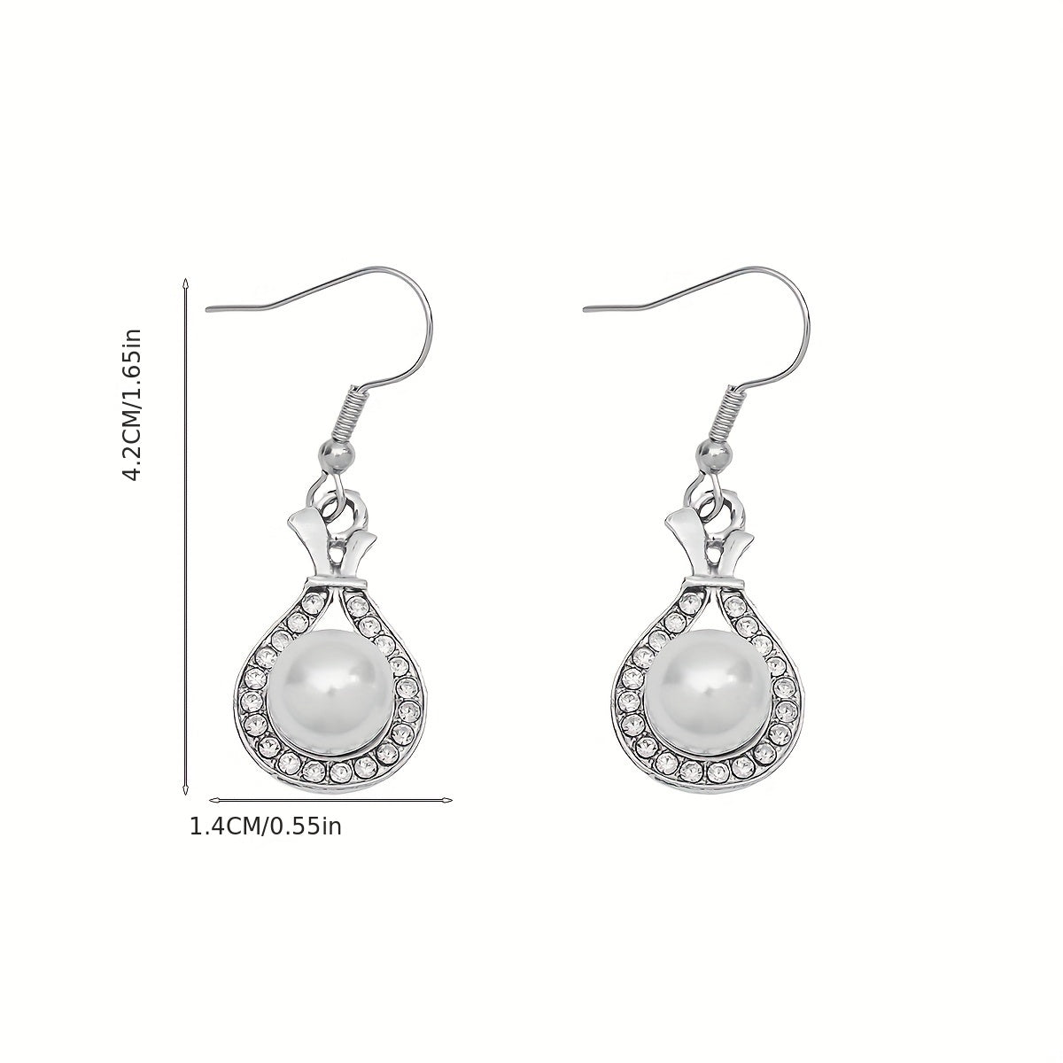These elegant dangle earrings feature faux pearls and sparkling rhinestones for a sophisticated look. Made of zinc alloy, they are perfect for adding a touch of glamour to any outfit. Ideal as a gift for a special woman in your life.