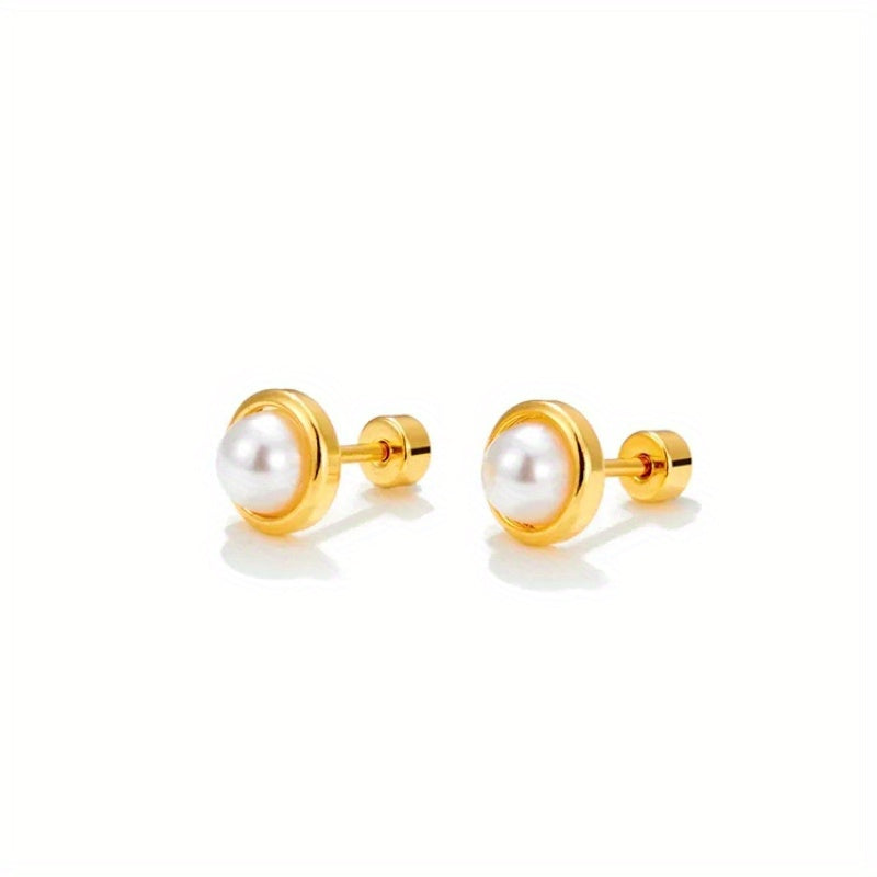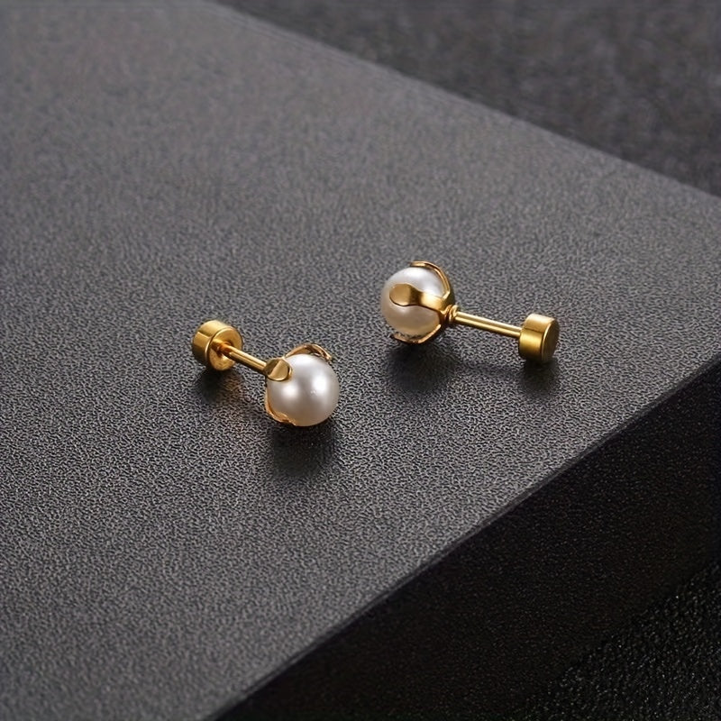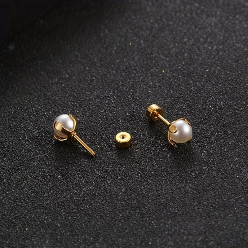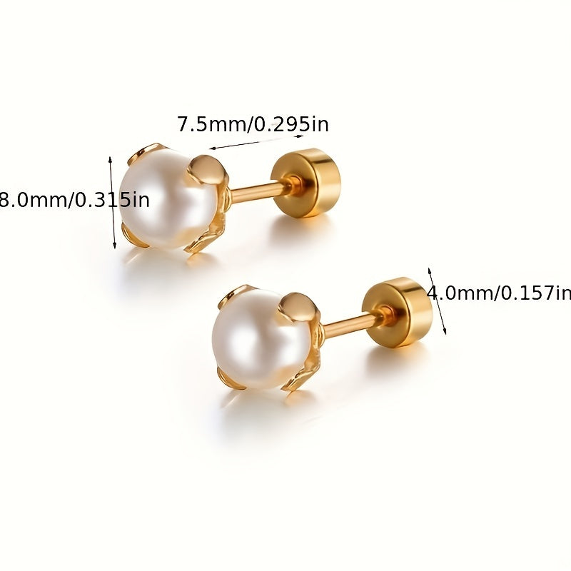 These elegant faux pearl stud earrings are suitable for both men and women. The stainless steel construction ensures durability and a polished look.