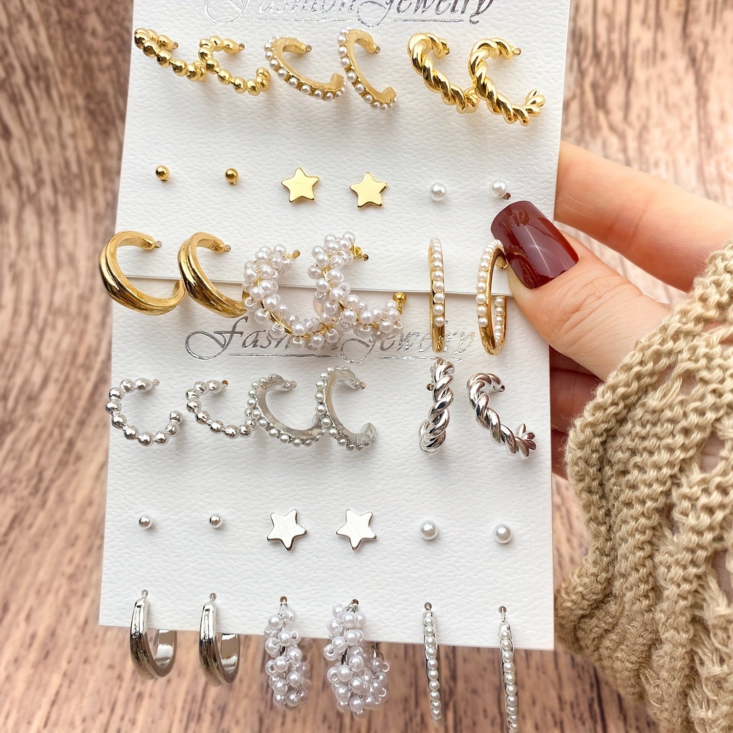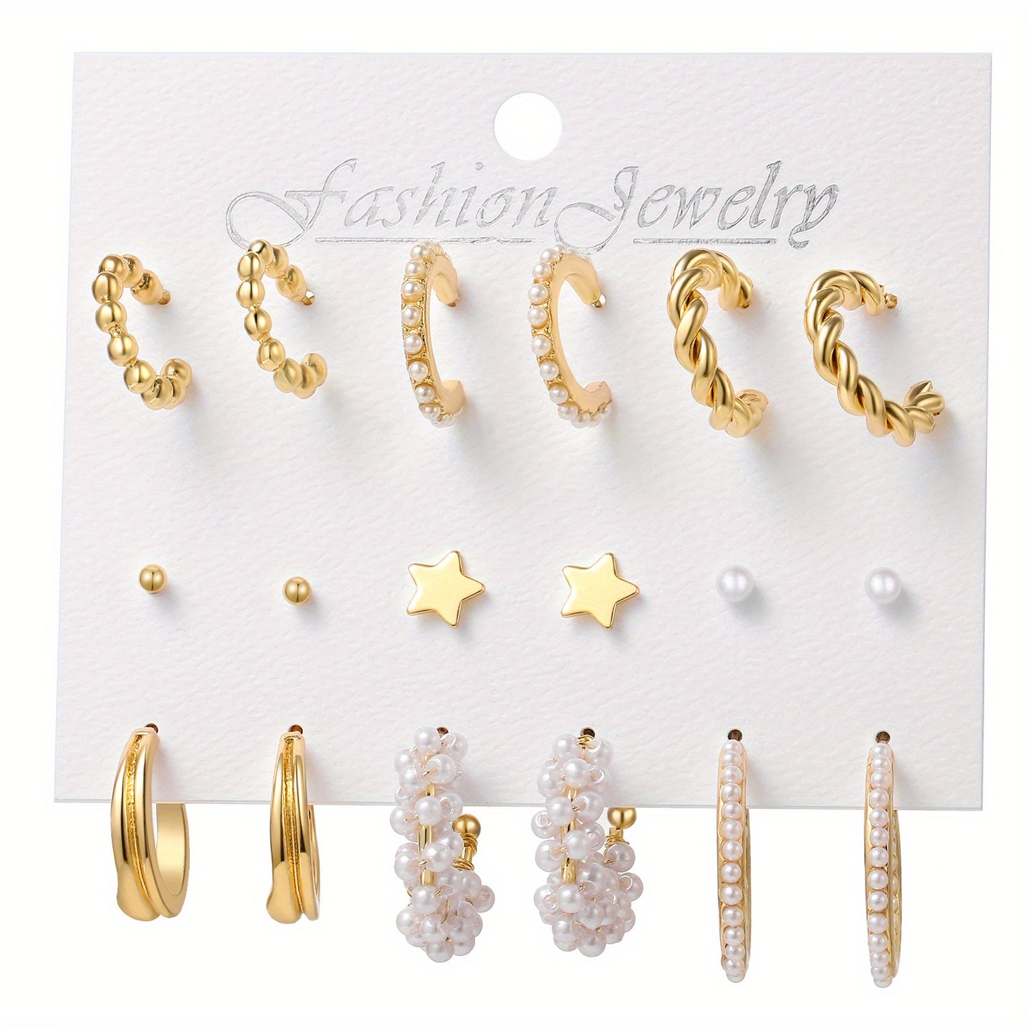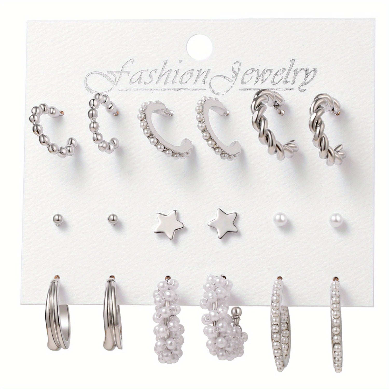 These C shape earrings feature faux pearl star and twist design, perfect for daily casual wear. Ideal gift for women who love retro-inspired accessories.