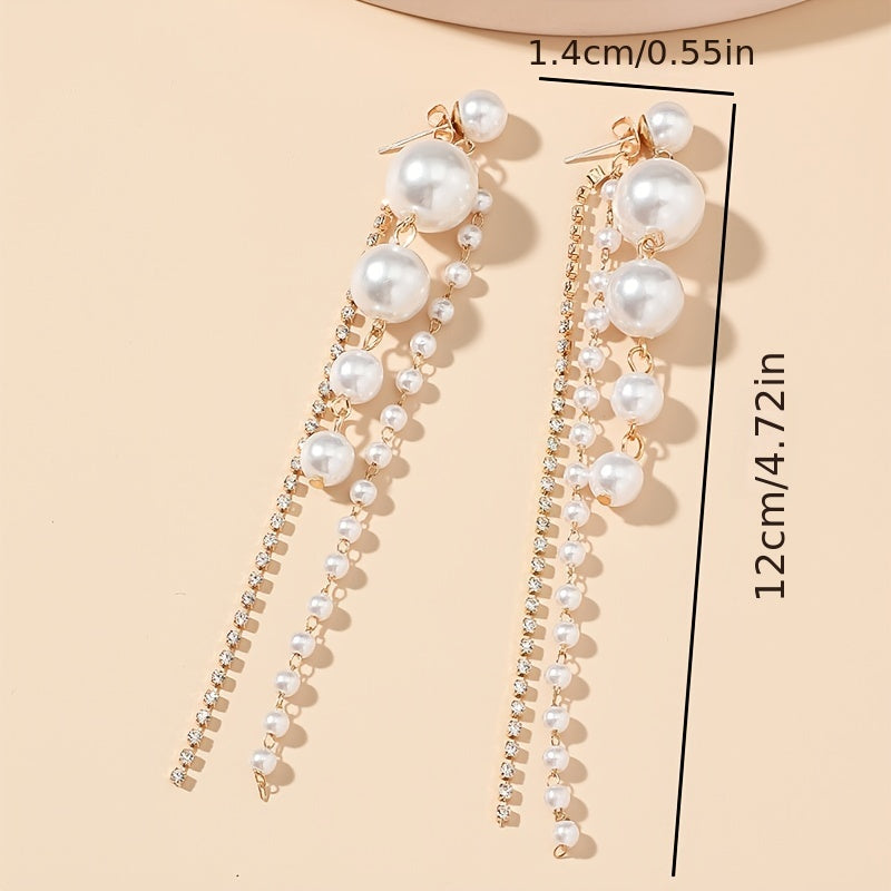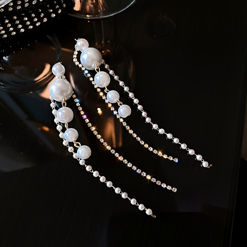 These exquisite earrings feature delicate faux pearl tassels, making them perfect for parties, banquets, and weddings. Ideal gift for women and girls.