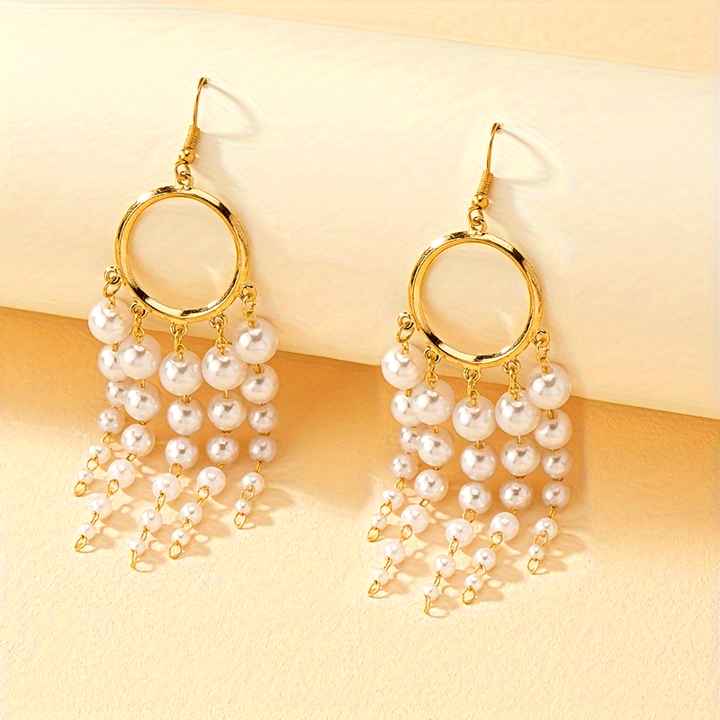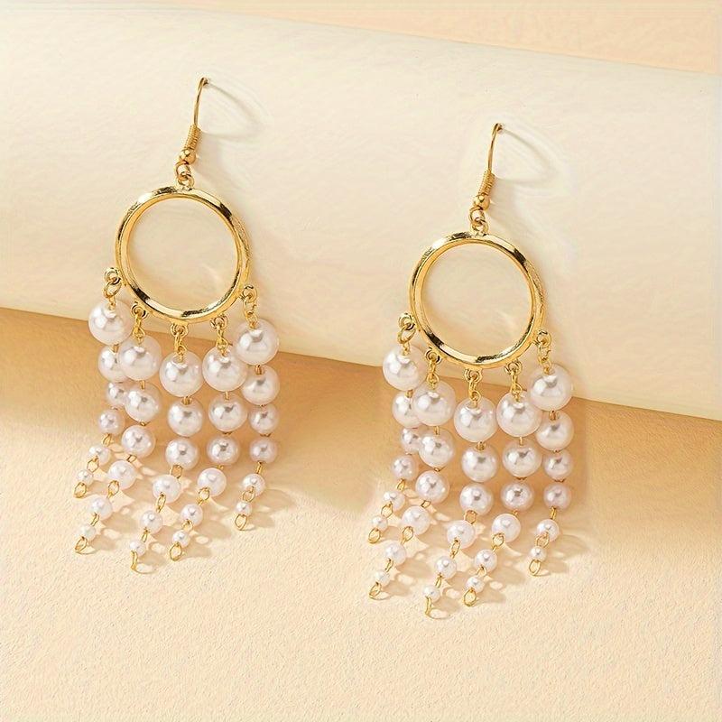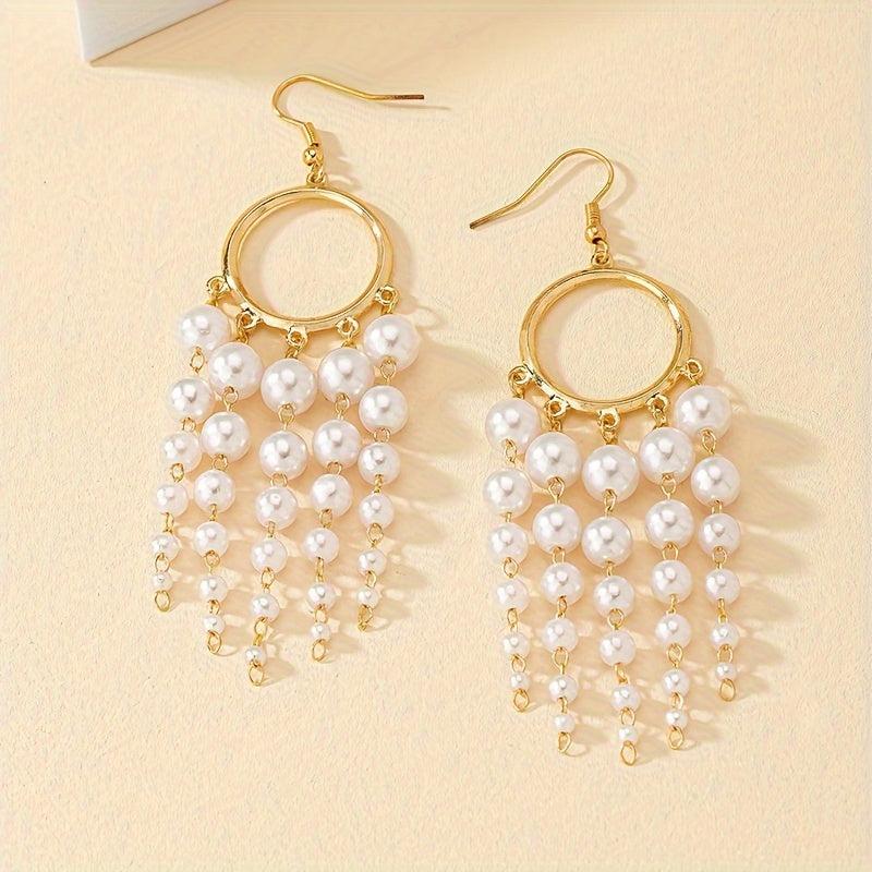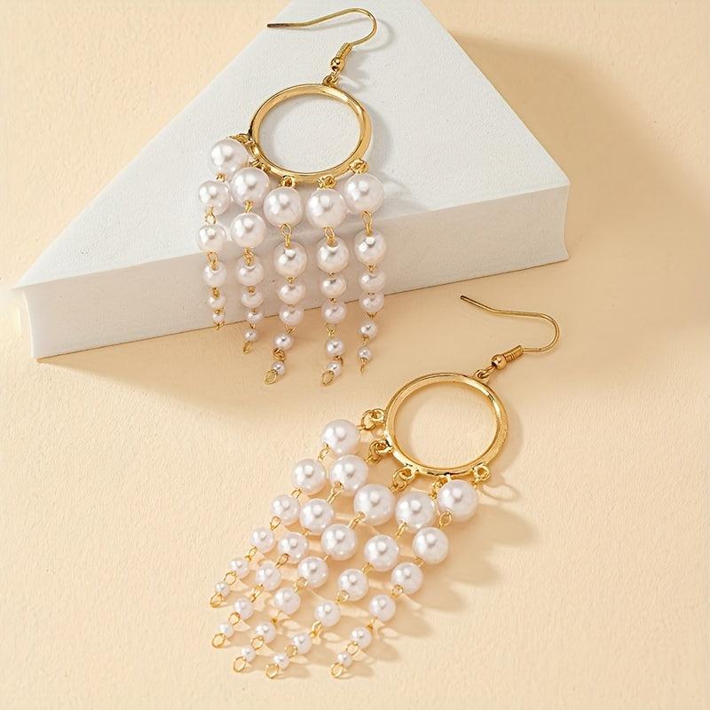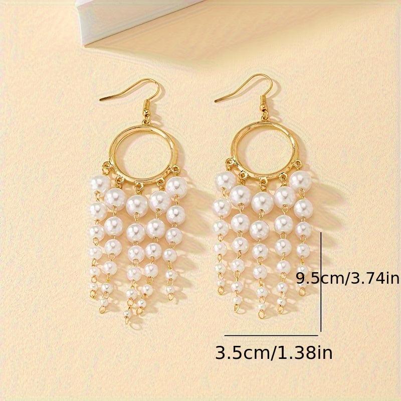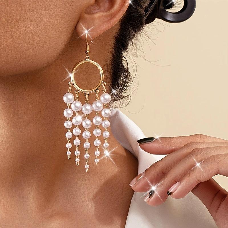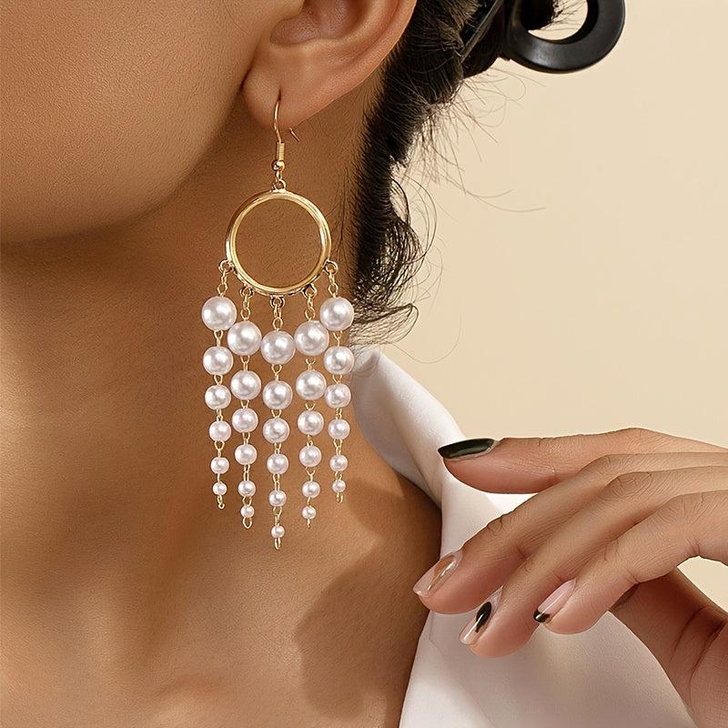 Enhance your look with these sparkling tassel drop earrings featuring faux pearls. Perfect for daily wear or parties.