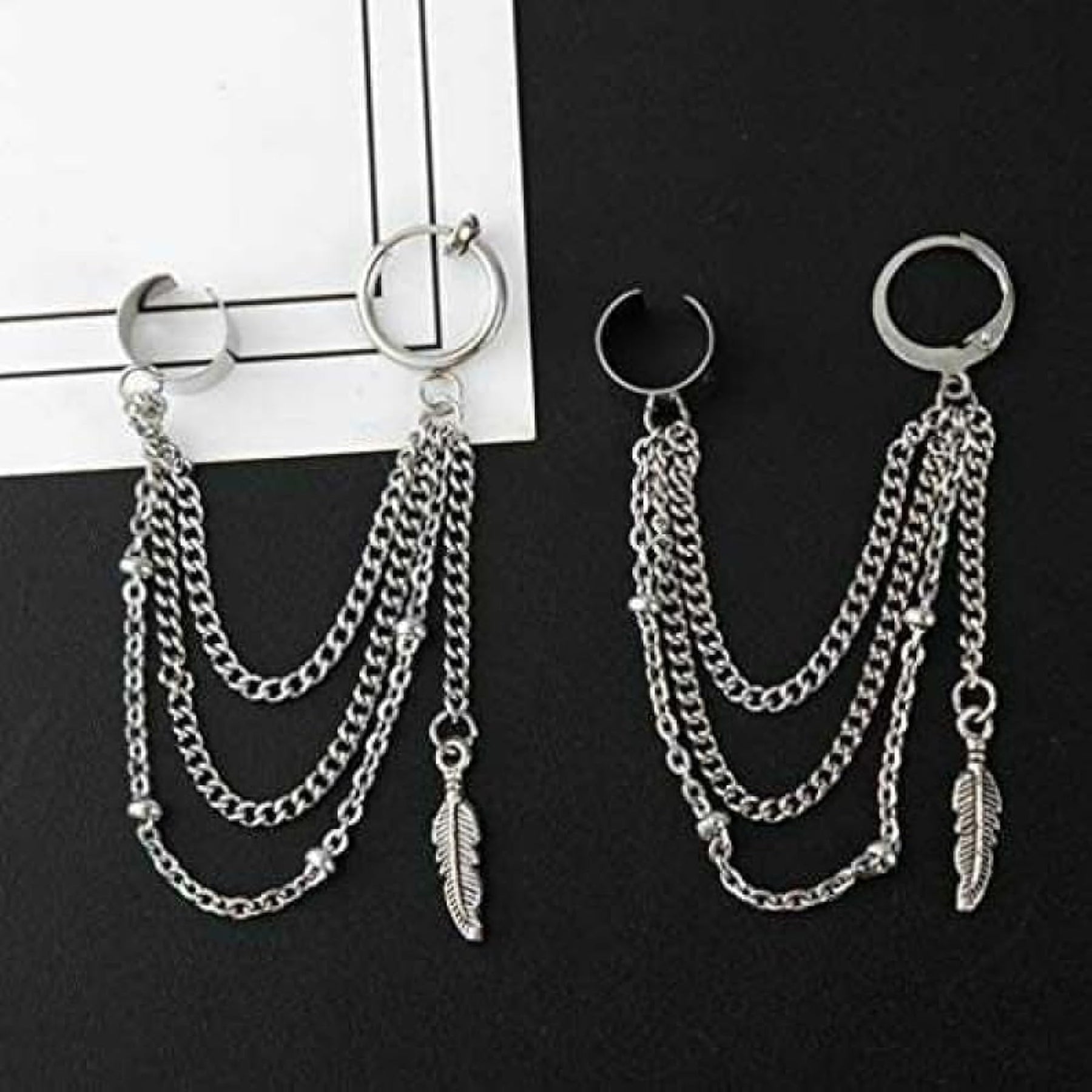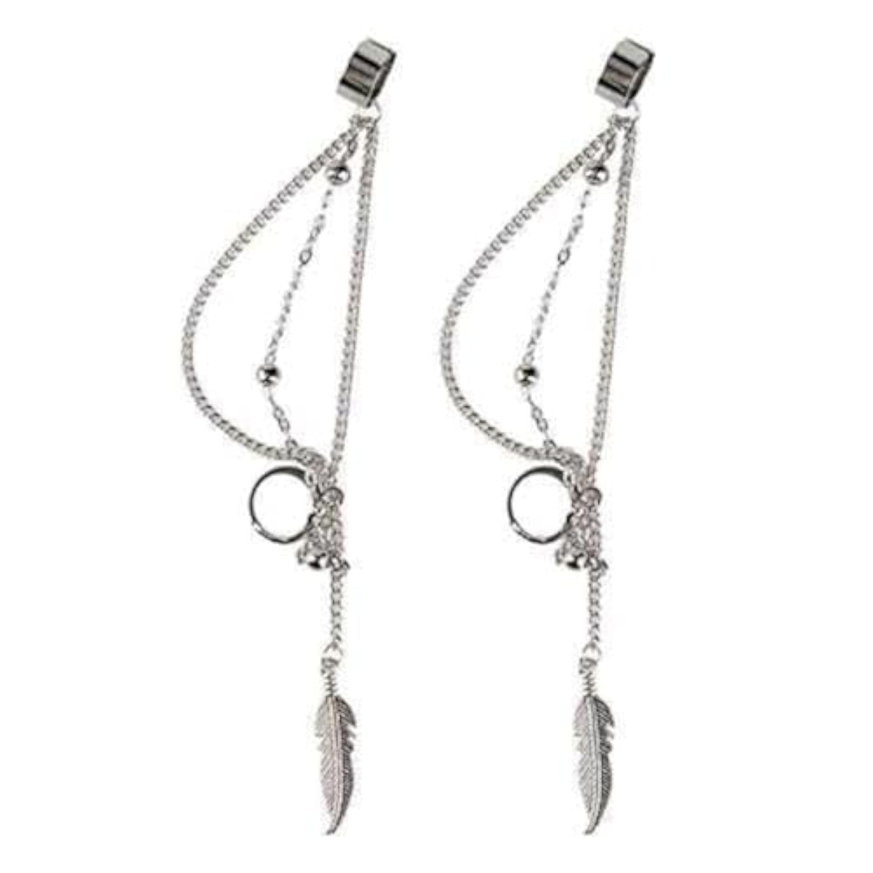 These elegant plated feather and chain tassel earrings will add a touch of sophistication to any outfit.