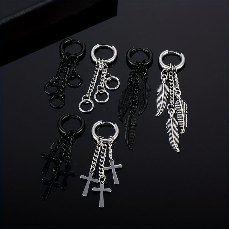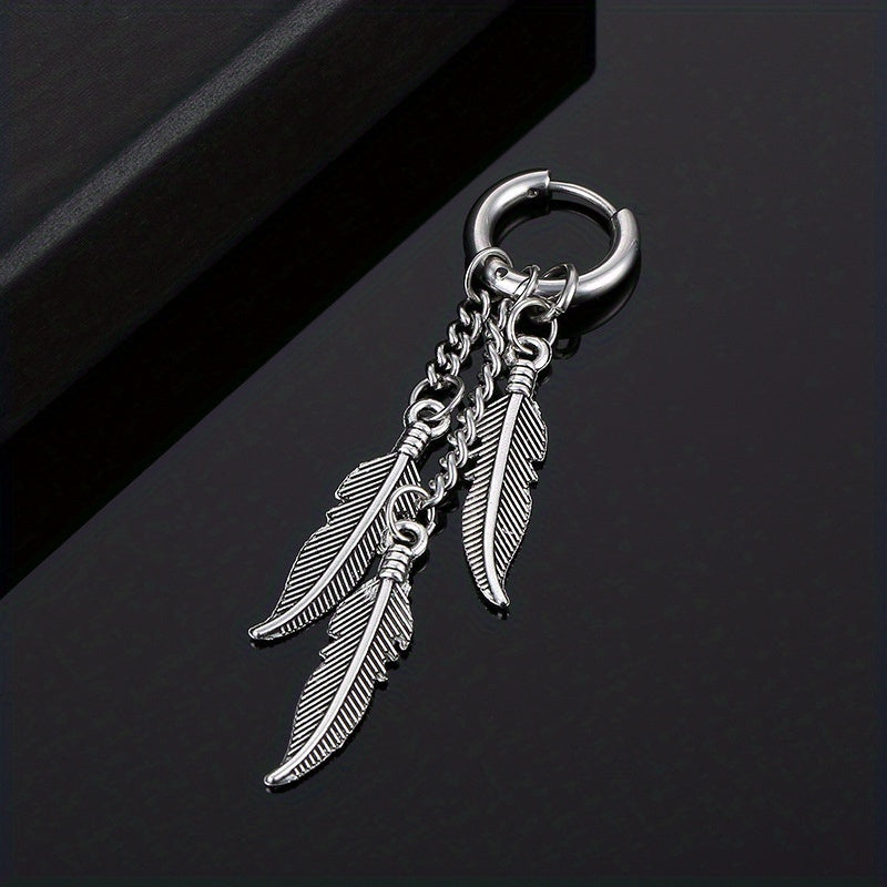 These stylish earrings are perfect for both men and women. Made of stainless steel, they feature a feather design with a tassel chain. The ear bone buckle adds a hip hop flair to your look.