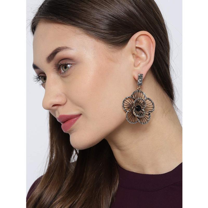 Add a touch of elegance with these stunning floral AAA AD oxidized drop earrings. Perfect for any occasion.