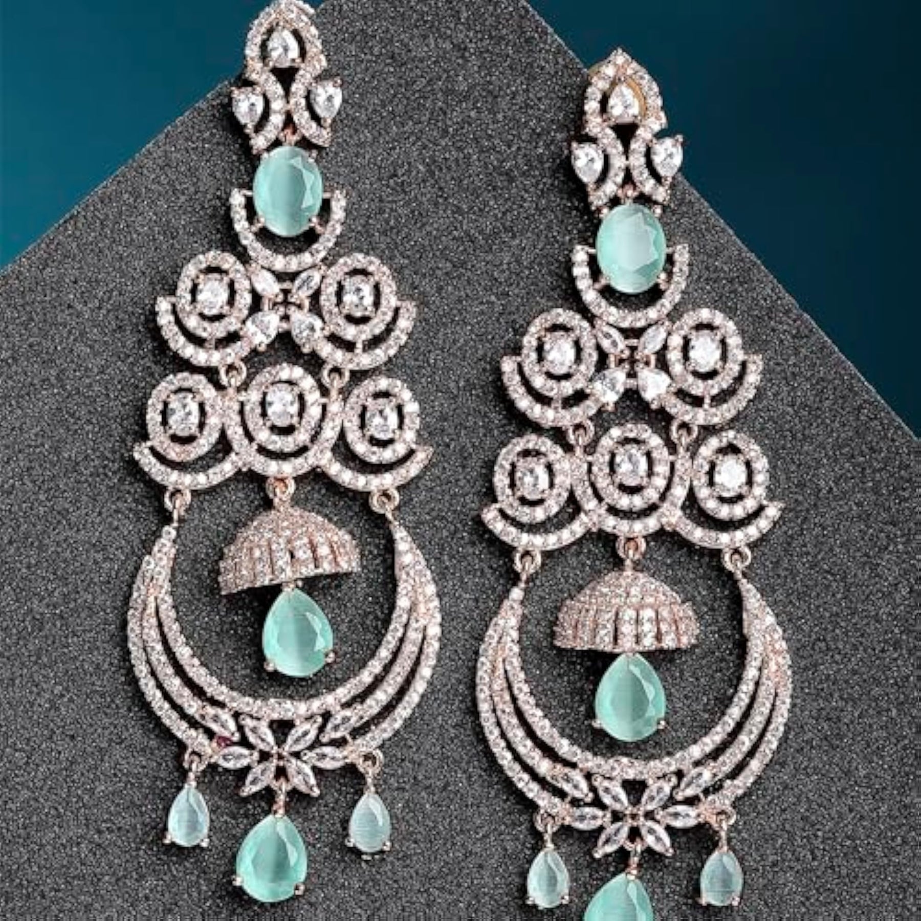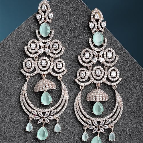 Stunning floral-shaped chandelier earrings adorned with American diamonds.