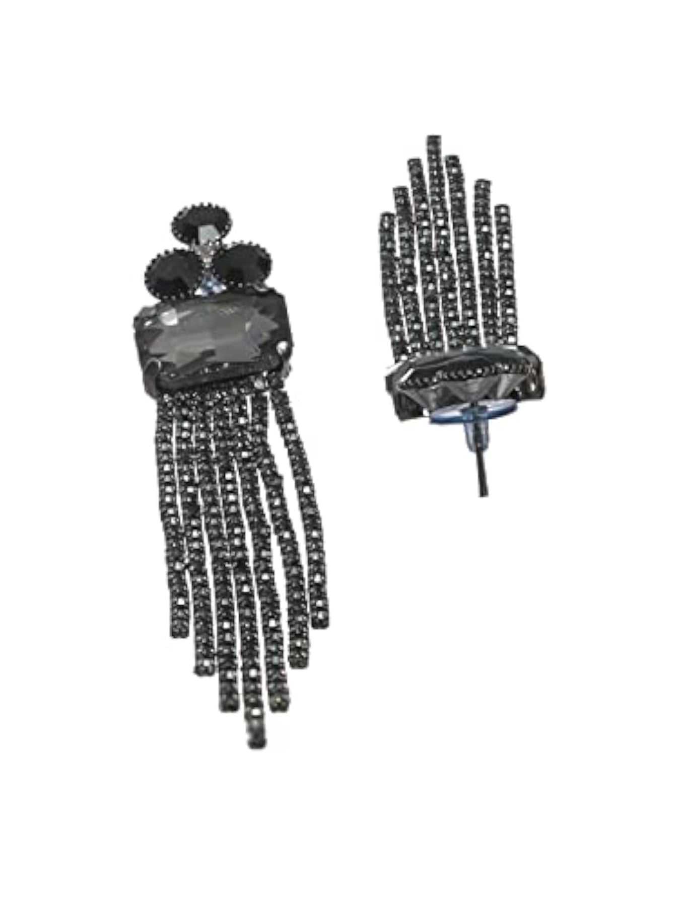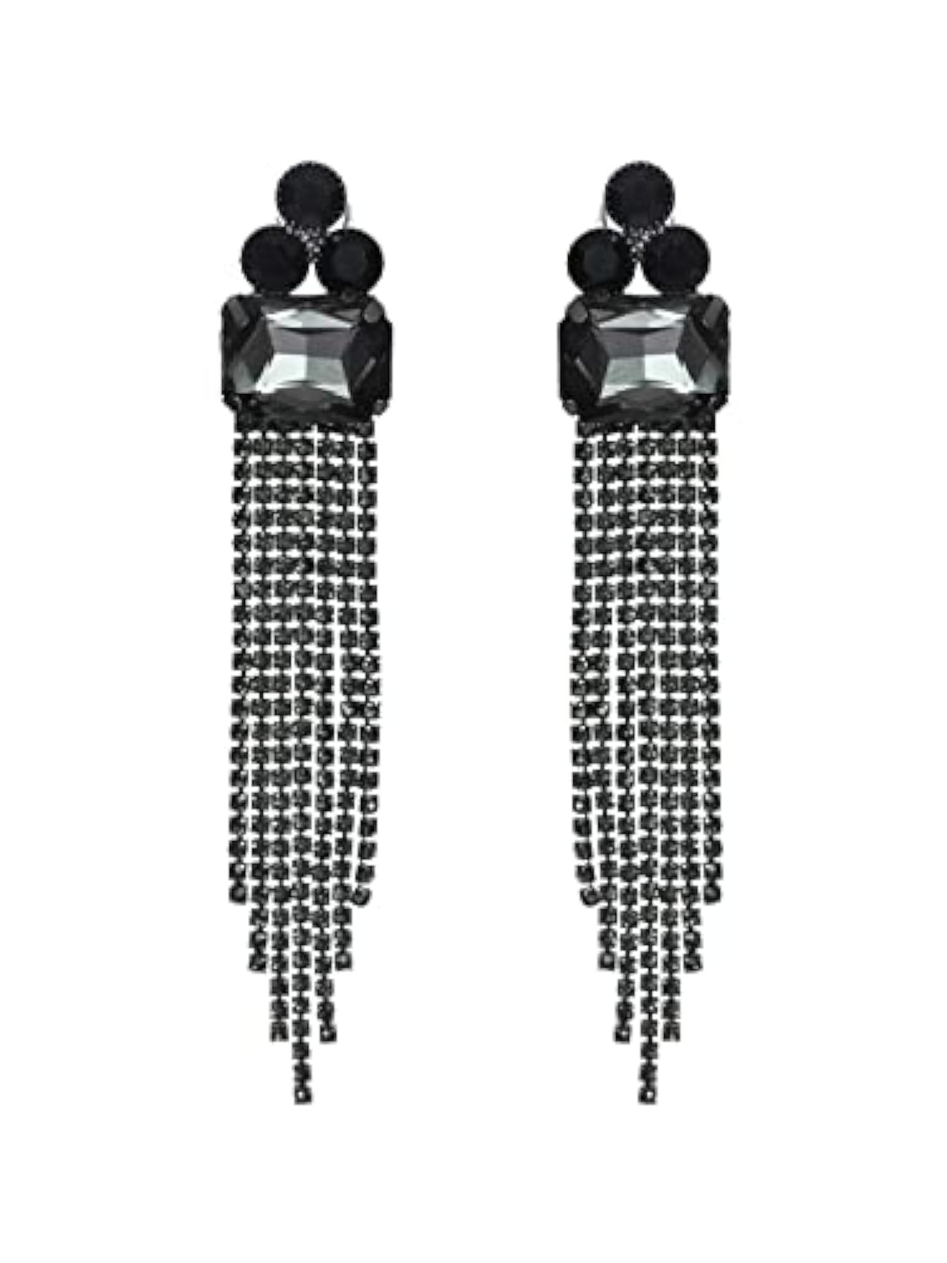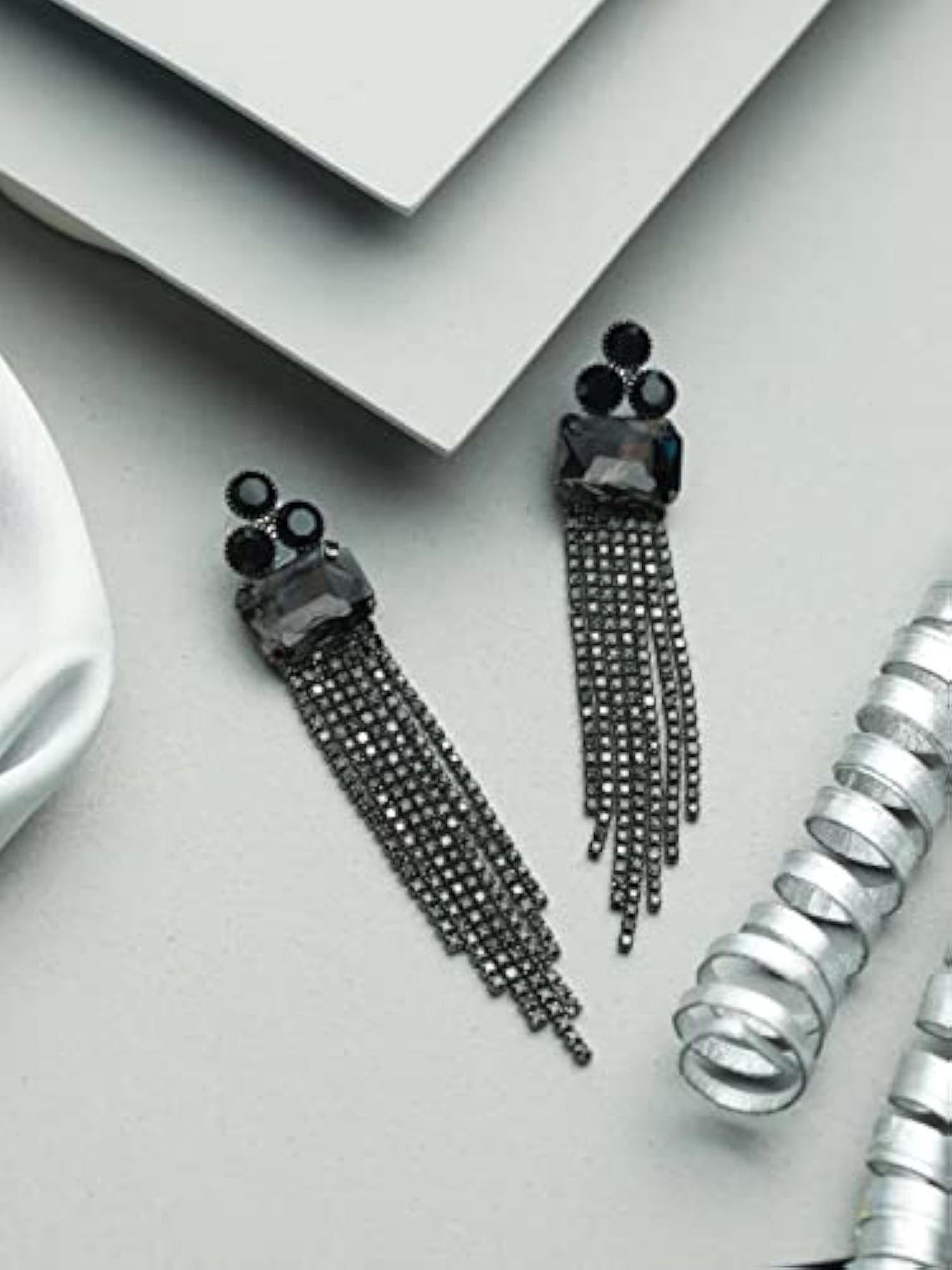 Add a touch of elegance to your look with these floral block tassle drop earrings.