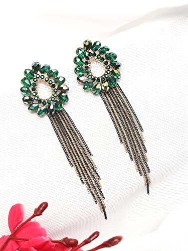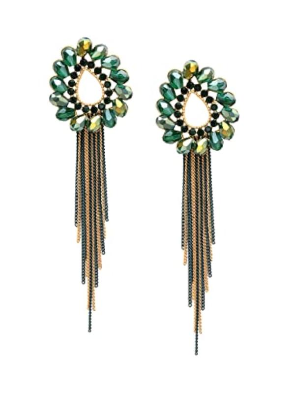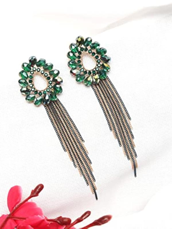 These elegant dangler earrings feature floral shaped crystals on long chains, perfect for adding a touch of glamour to any outfit. Makes a lovely birthday or anniversary gift for your wife.