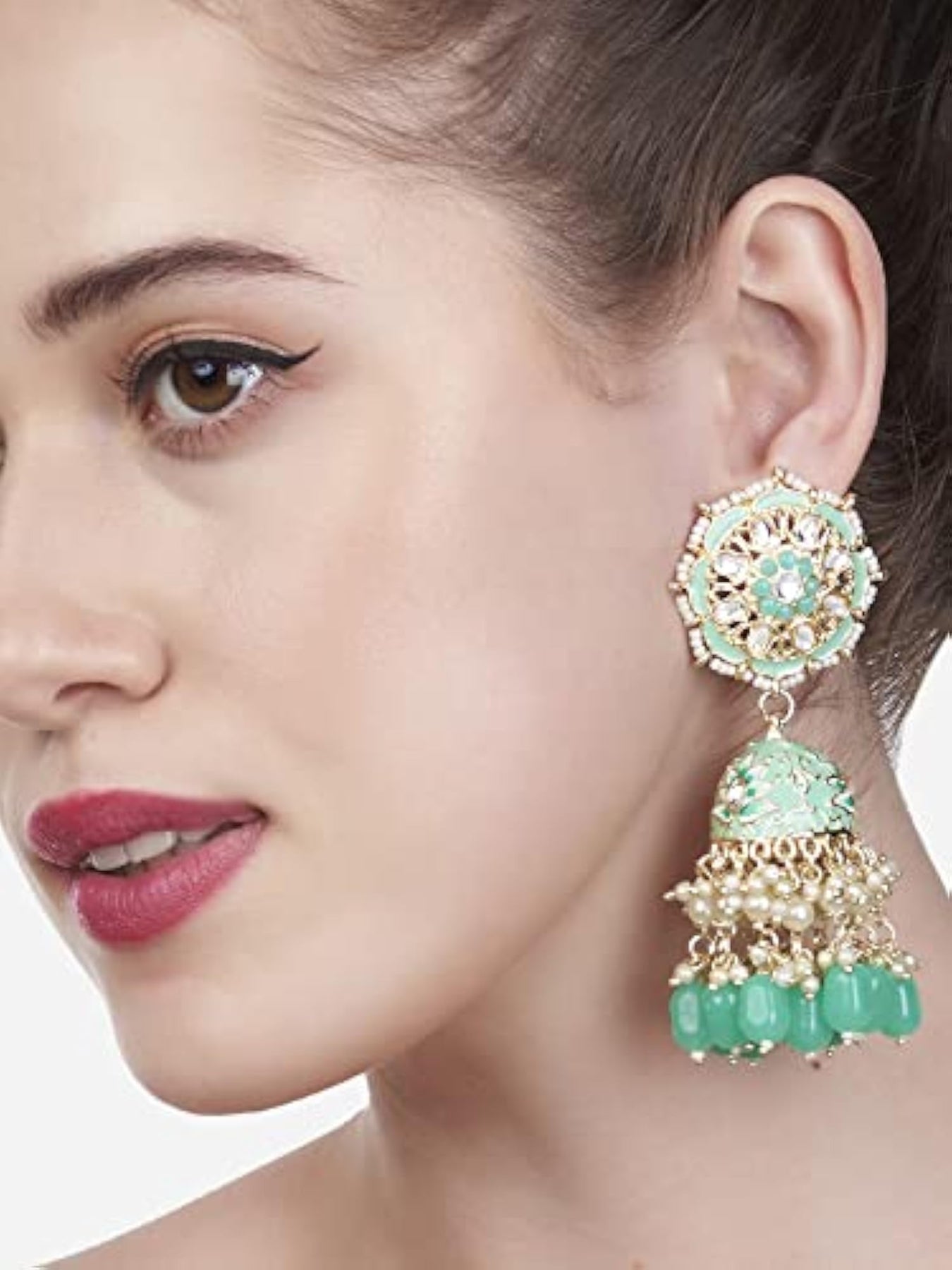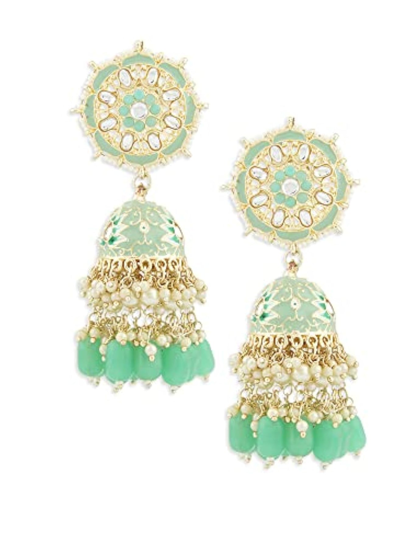 Elegant and traditional Meenakari floral design Kundan jhumki earrings perfect for women.
