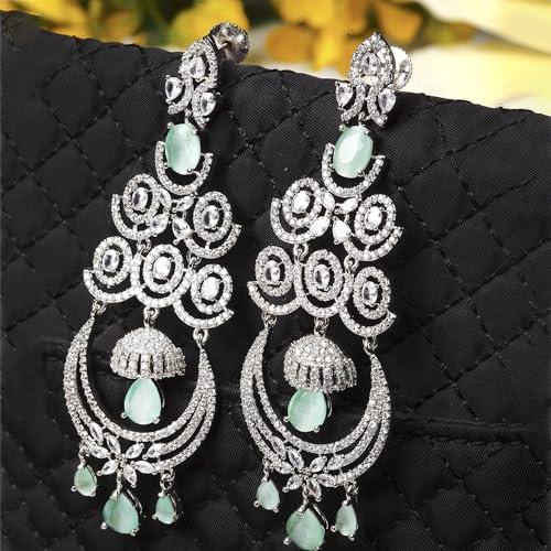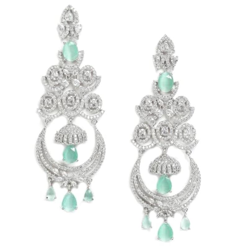 Elegant and eye-catching chandelier earring featuring floral design with American diamond accents.