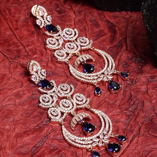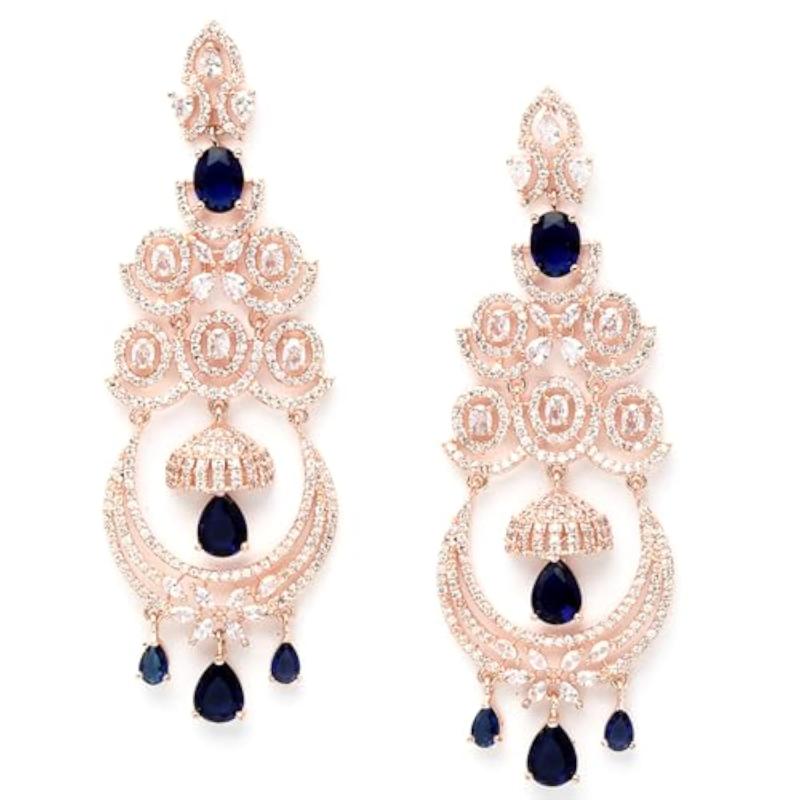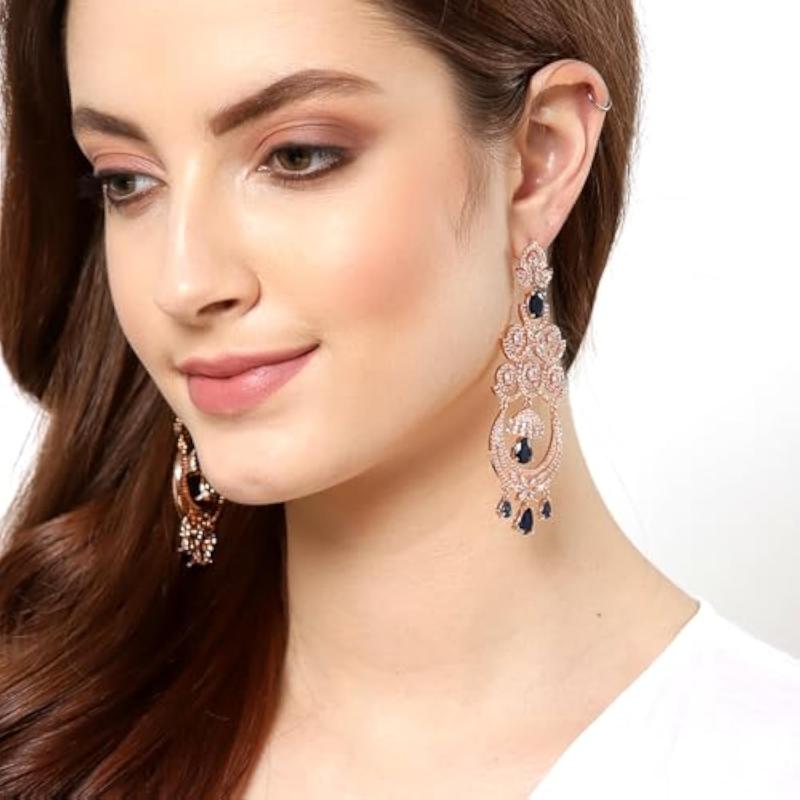 Elegant chandelier earring adorned with sparkling American diamonds in a beautiful floral design.