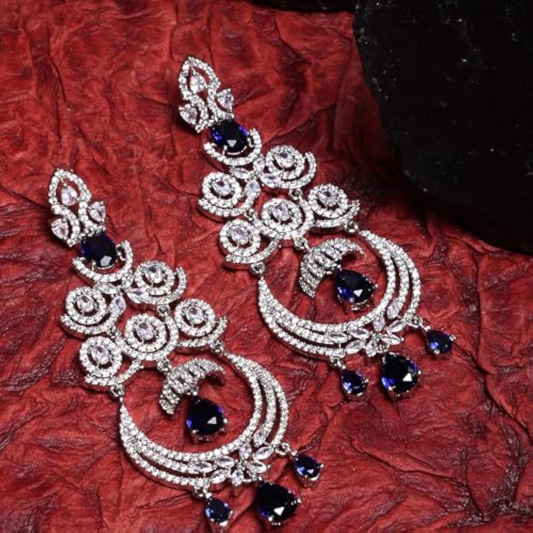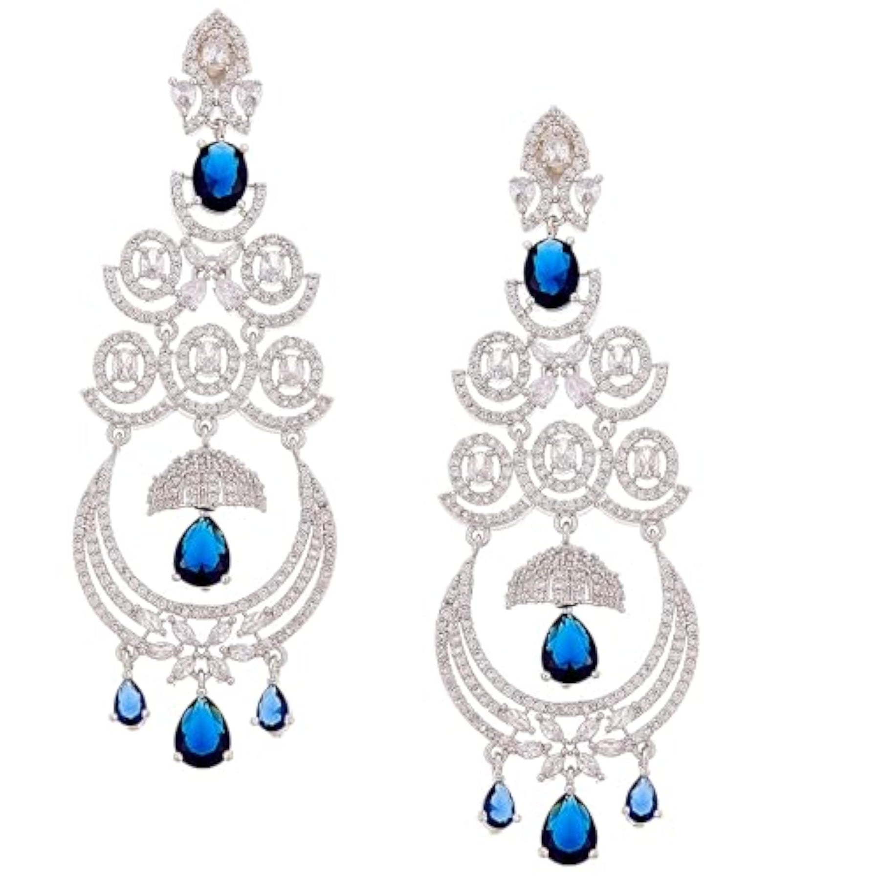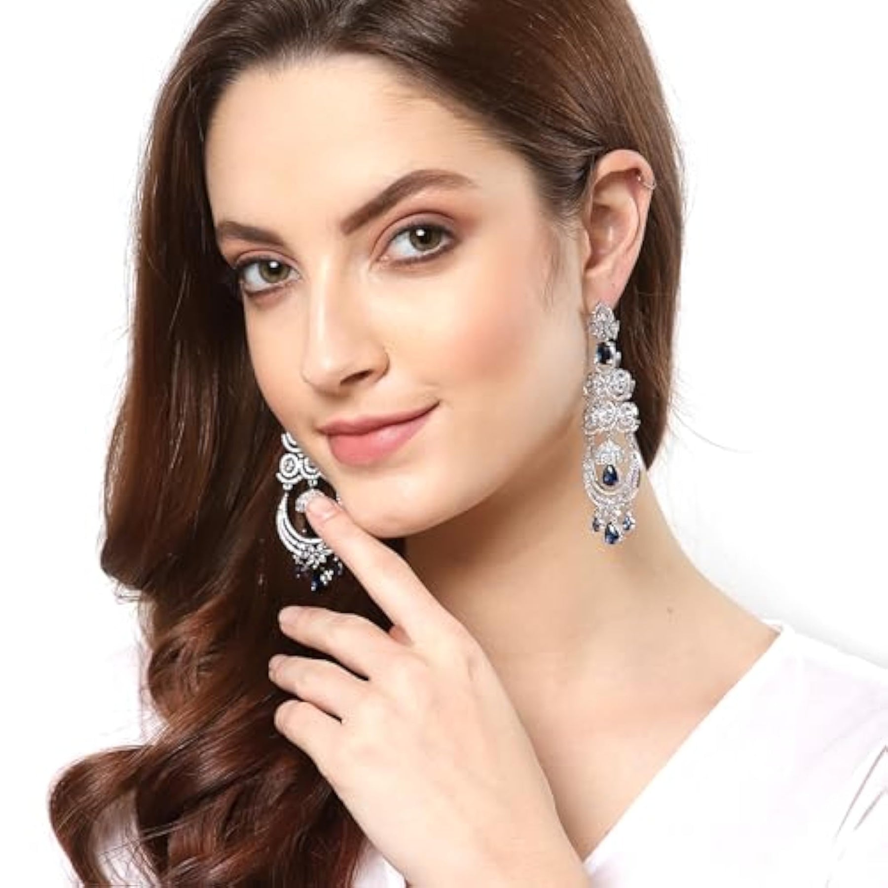 Elegant floral design chandelier earring with sparkling American diamonds.