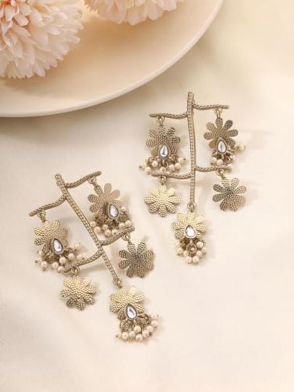 Make a bold statement with these stunning floral plated earrings that add a touch of elegance to your ensemble.