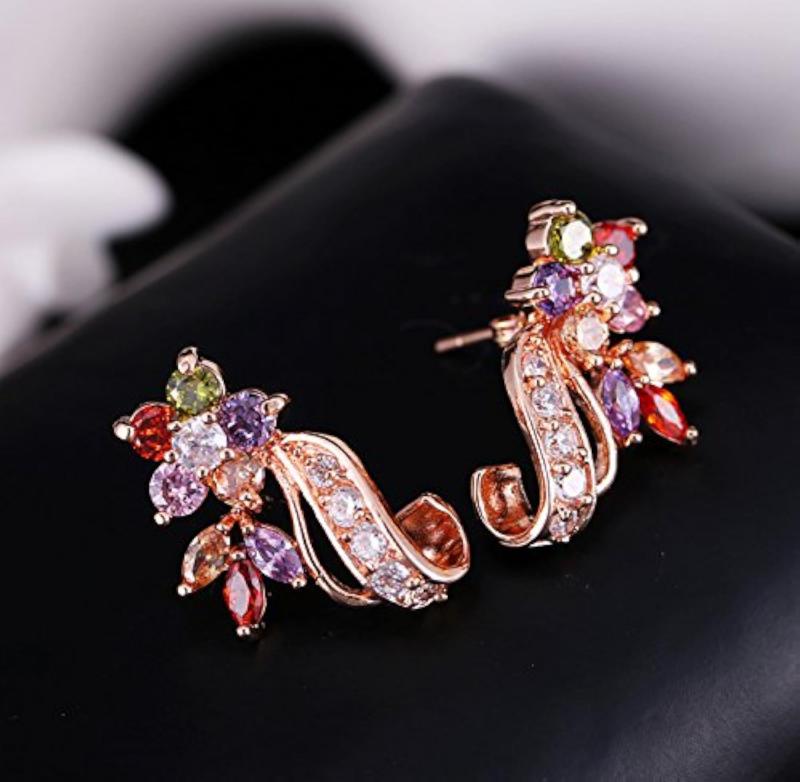 Add a touch of elegance with these stunning cubic zirconia and crystal stud earrings from Florets Love. Perfect for any occasion!