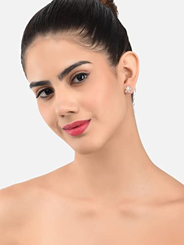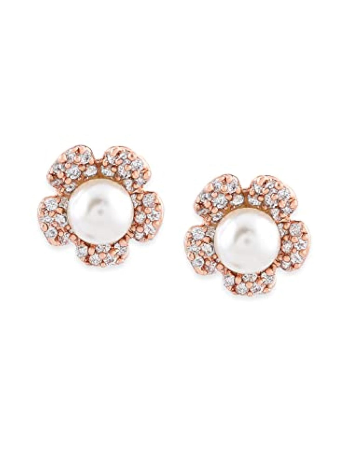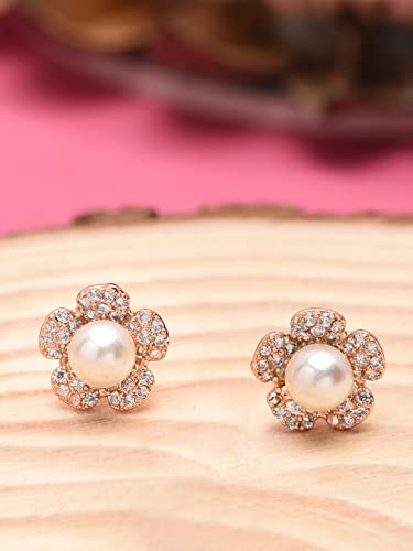 Elegant flower-shaped earring with sparkling cubic zirconia and lustrous pearl, perfect for women.