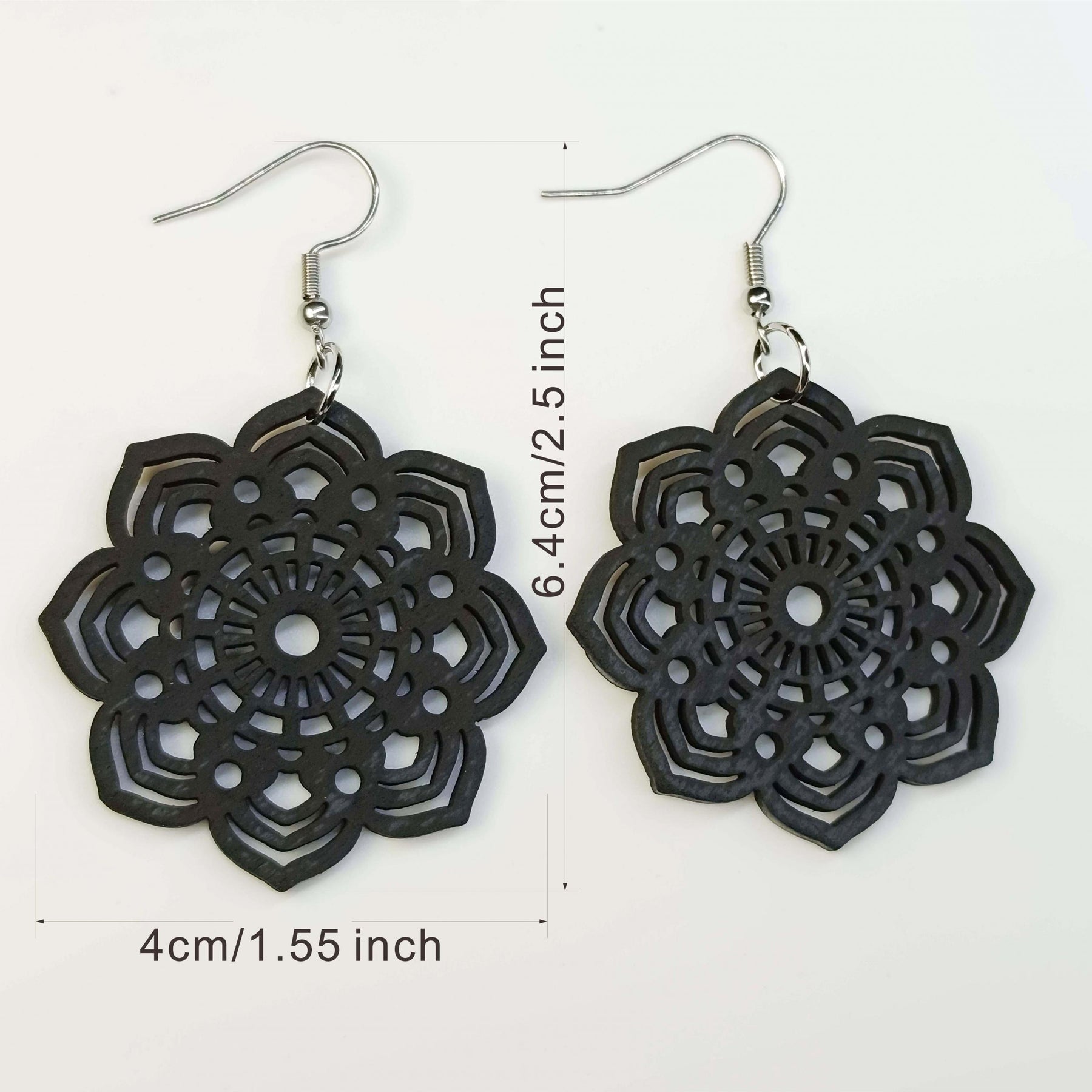 These unique dangle earrings feature a flower hollow design, perfect for adding a boho touch to any outfit. Made of high-quality wood, these earrings make a great gift for any female in your life.