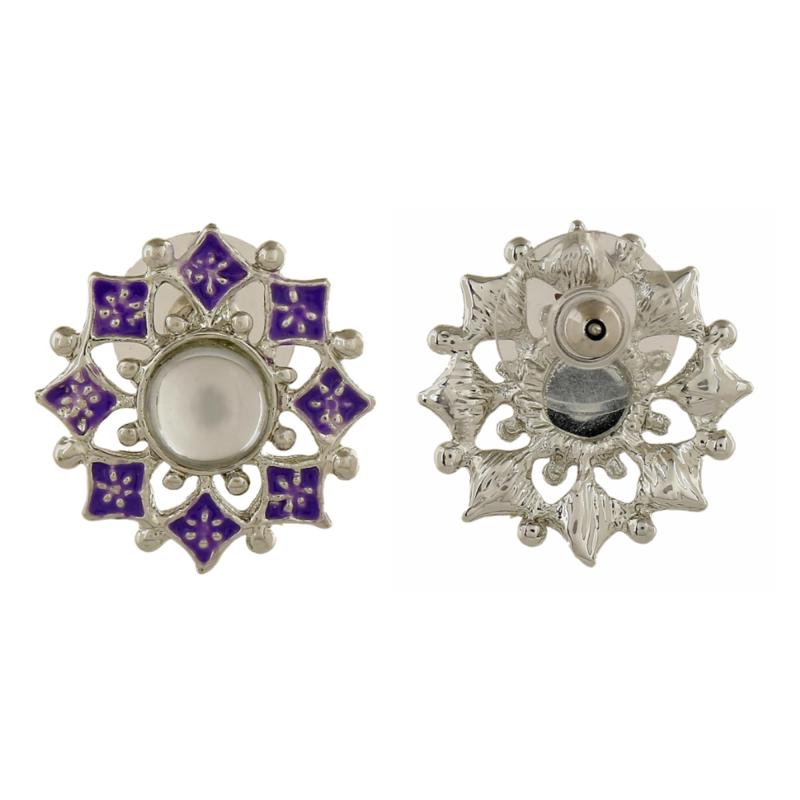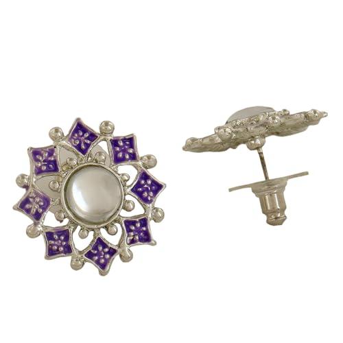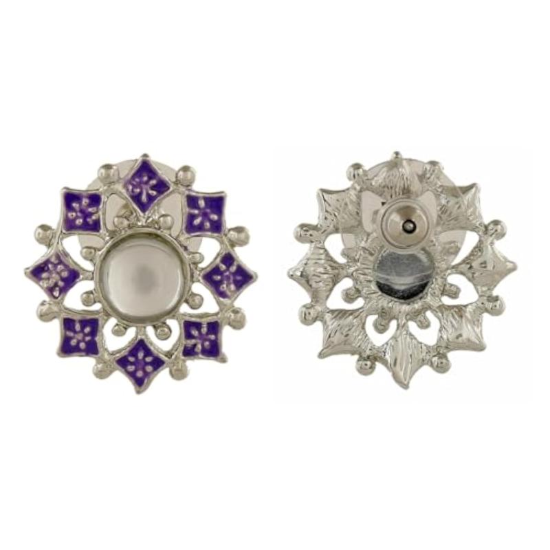 Elegant flower shaped earrings with Meenakari and Kundan work, perfect for all occasions.