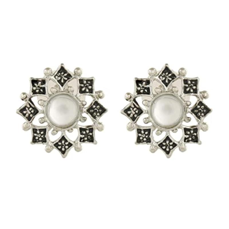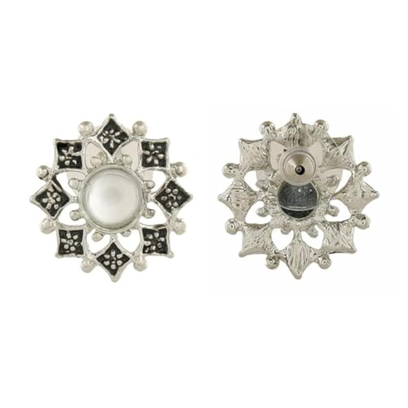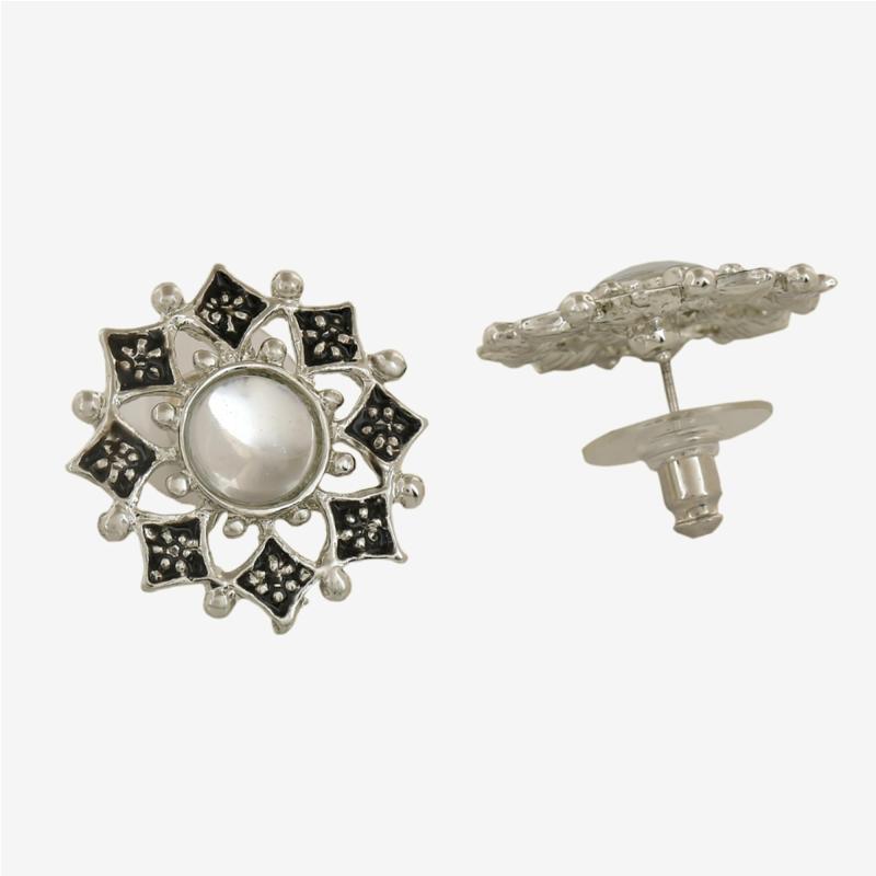 Add a touch of elegance with these flower-shaped stud earrings featuring vibrant meenakari work and kundan embellishments.