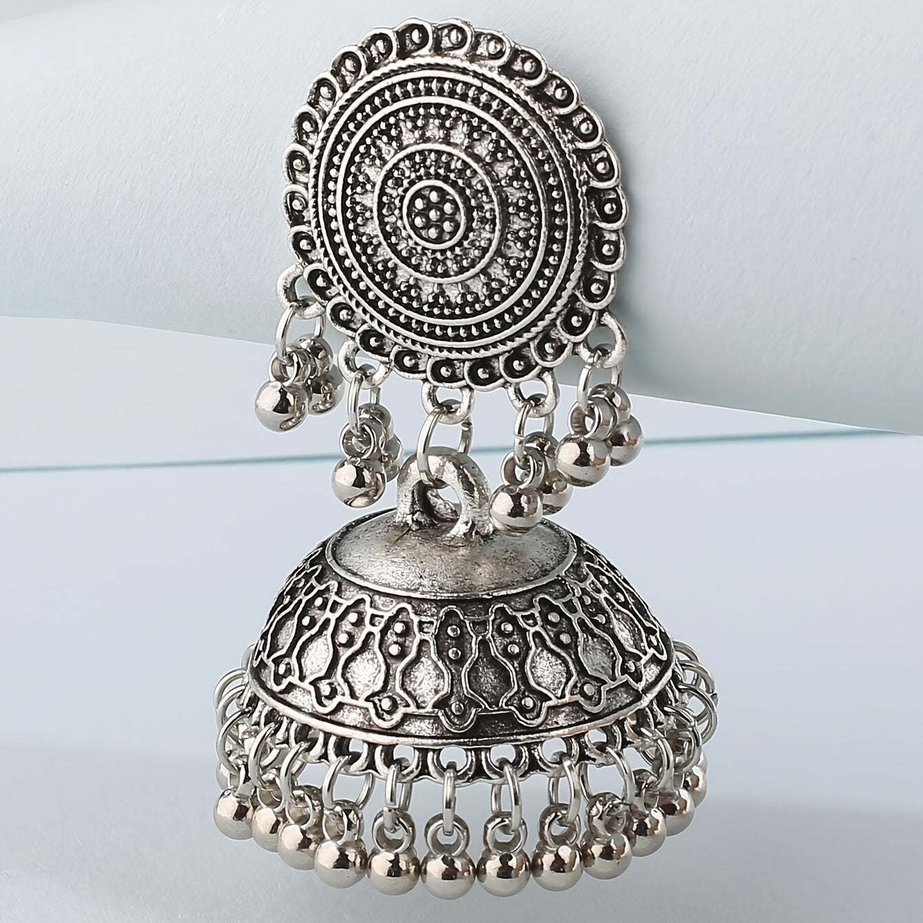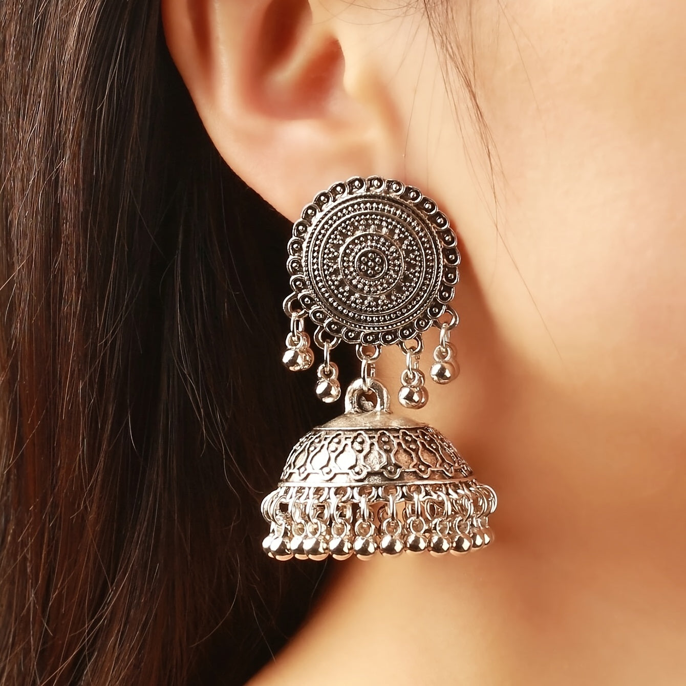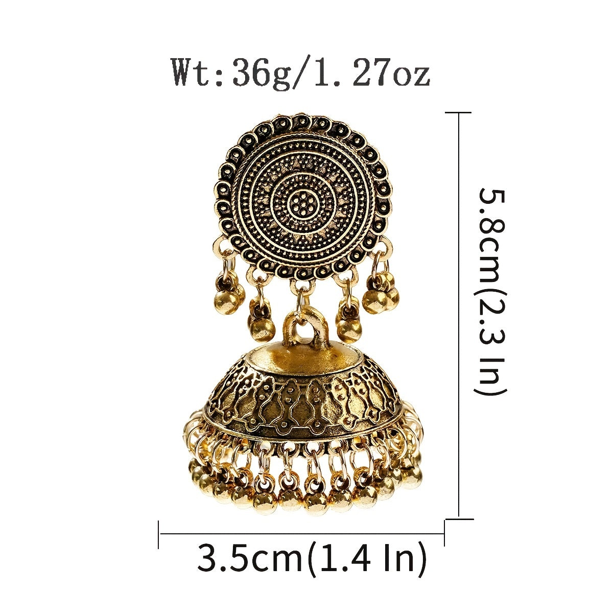 Add a touch of retro Bohemian style to your outfit with these dangle earrings featuring a flower pattern and big bell pendant. Made of high-quality alloy material.