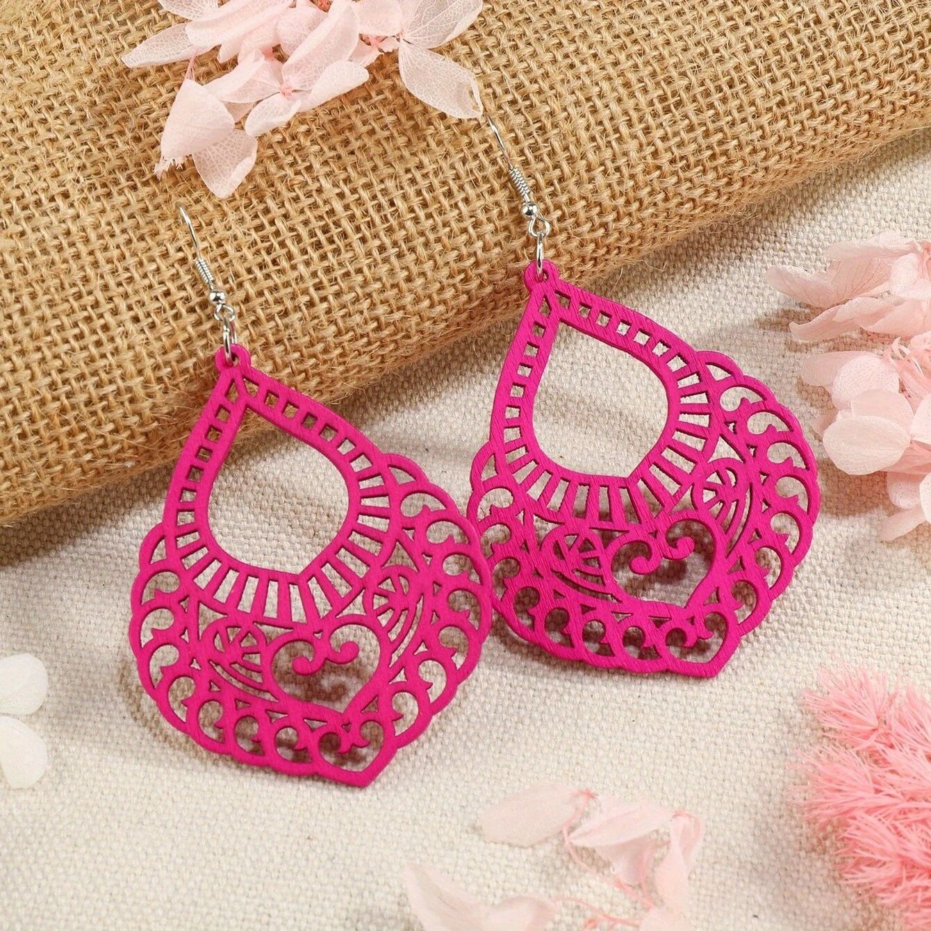 Add a touch of vocation style to your look with these beautiful flower pattern dangle earrings. Perfect for a sexy and elegant look, these earrings make a great gift for any occasion.