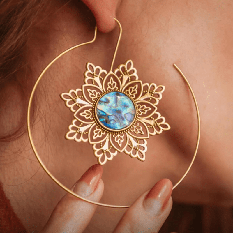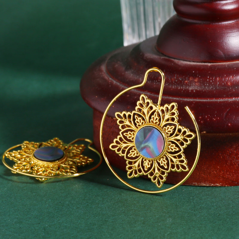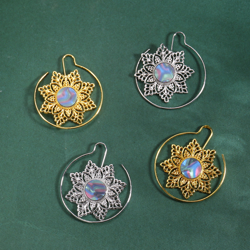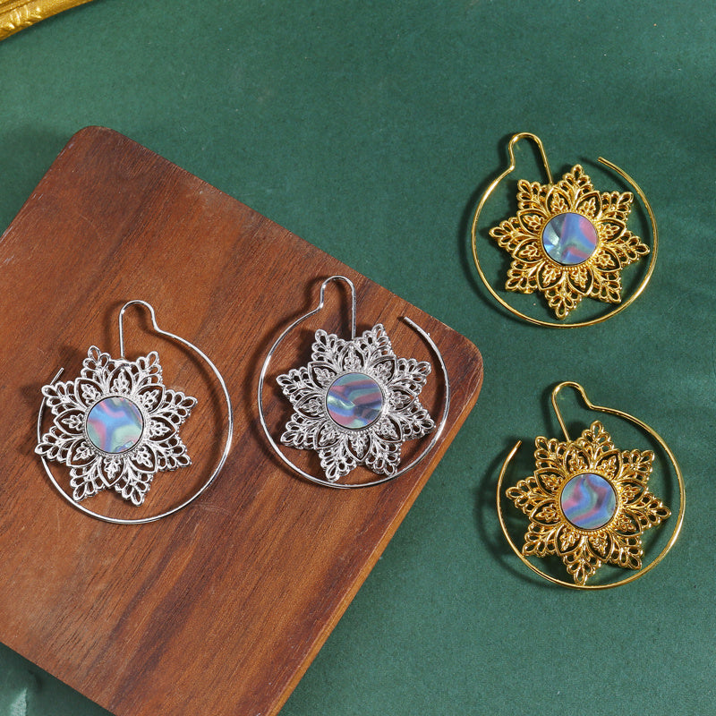 These large hoop earrings feature a flower shape with inlaid synthetic gems pendant, making them perfect for banquets, parties, and proms. Sweet and elegant jewelry choice.