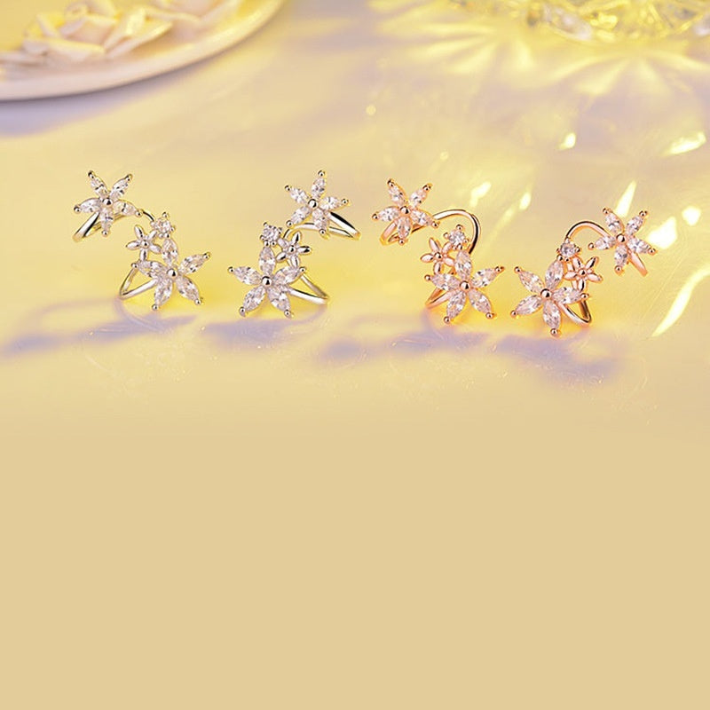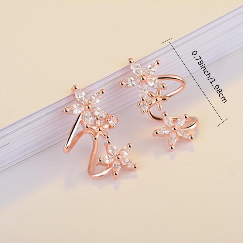 Elegant flower-shaped ear clips with zircon inlay, perfect for daily wear or special occasions like engagement parties.