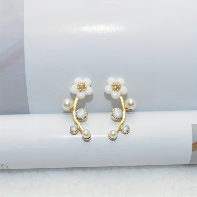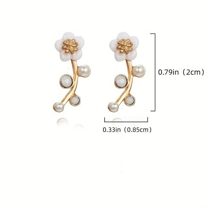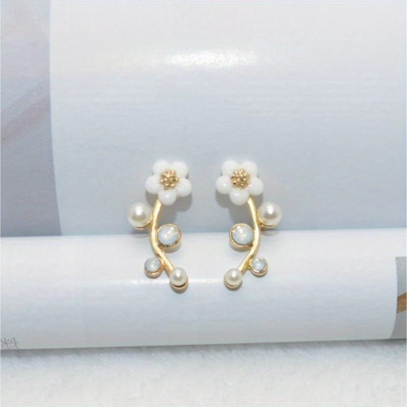 These elegant flower stud earrings are adorned with zircon faux pearls, making them a perfect accessory for women and girls. The alloy material is durable and long-lasting.
