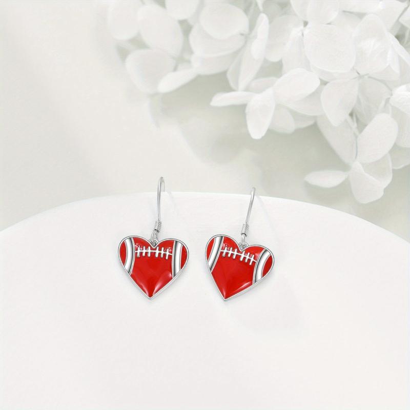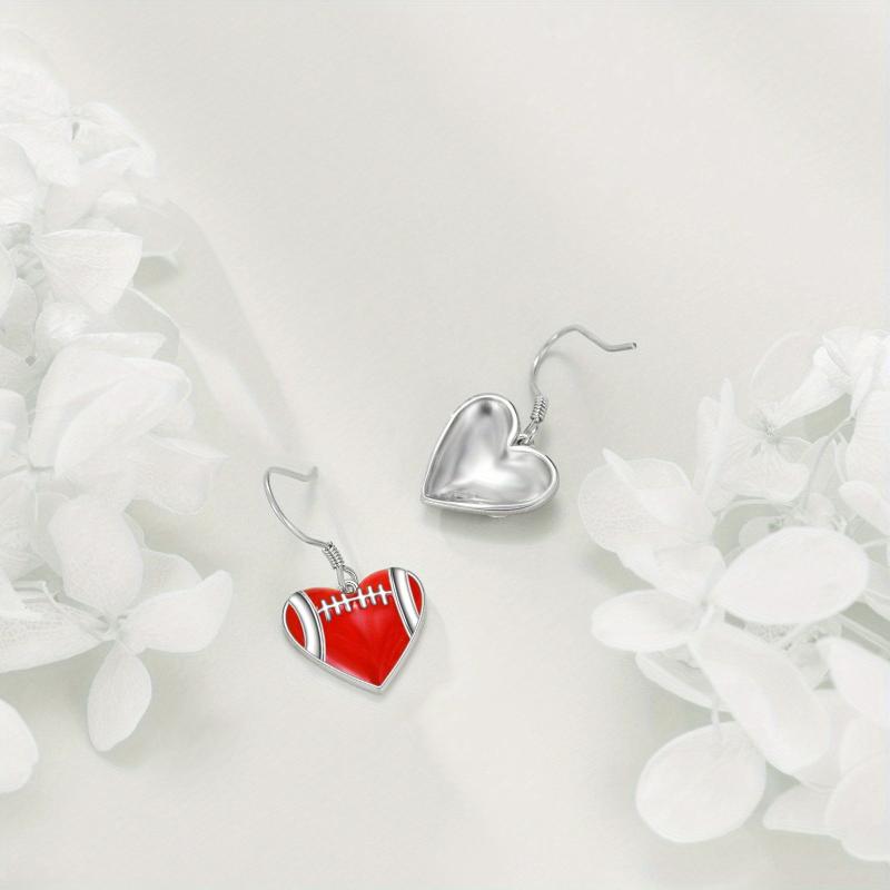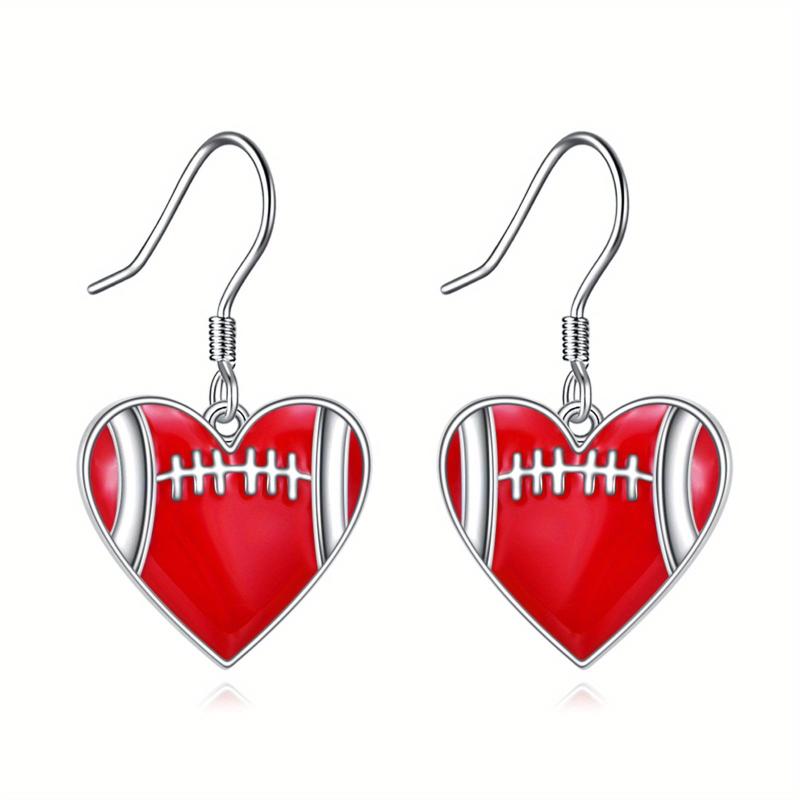 Add a sporty touch to your style with these sterling silver football heart dangle earrings. Perfect for women who love sports, these hypoallergenic earrings are a great accessory for game days or everyday wear.