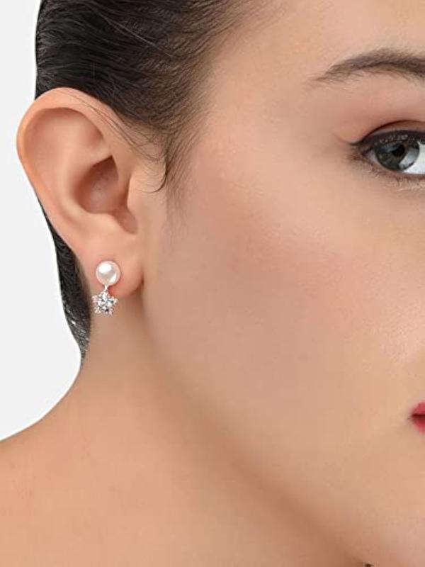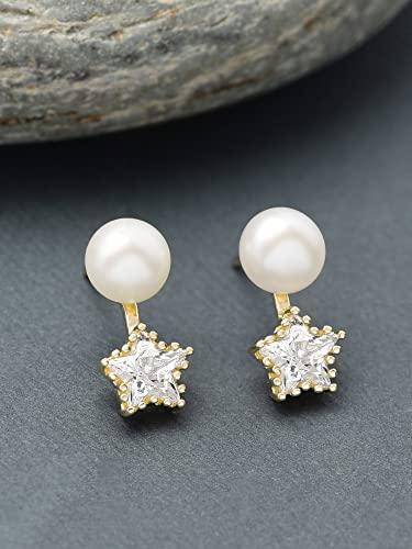 Elegant studs earrings featuring freshwater pearl and cubic zirconia star design. Perfect for women who love classy and sophisticated jewelry.
