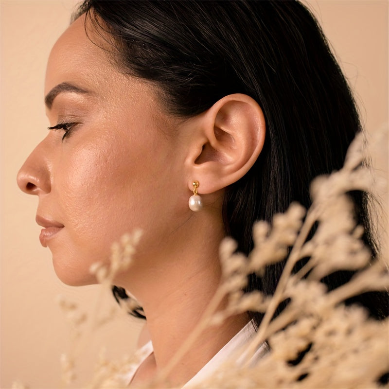 Add a touch of elegance to your everyday look with these freshwater pearl pendant dangle earrings. The copper 14K plated jewelry is perfect for daily wear or casual occasions.