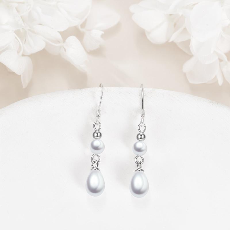 Elegant freshwater pearls earrings made of sterling silver. Perfect for women as a Valentine gift. Add a touch of sophistication to your look with these beautiful dangle earrings.