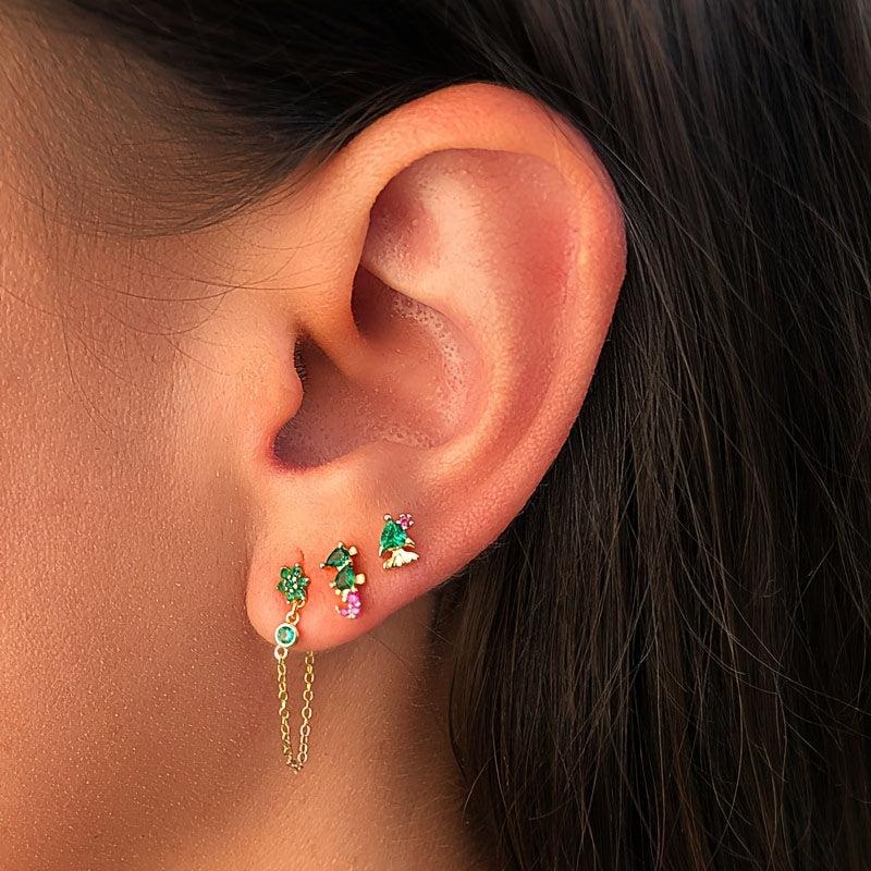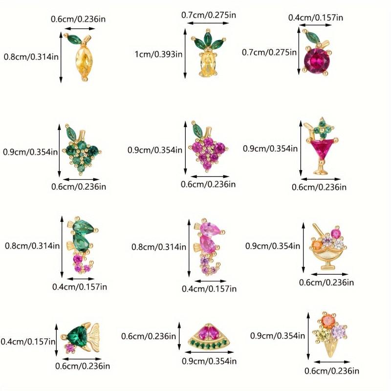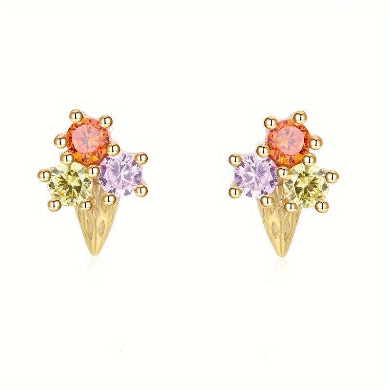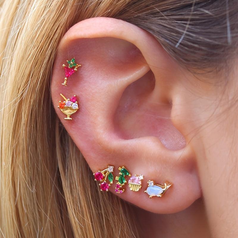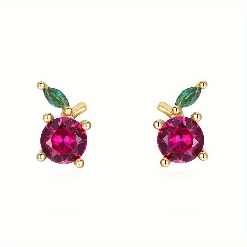 Add a touch of unique style to your outfit with these fashionable golden earrings featuring a fruit ocean series design adorned with zirconia stones.