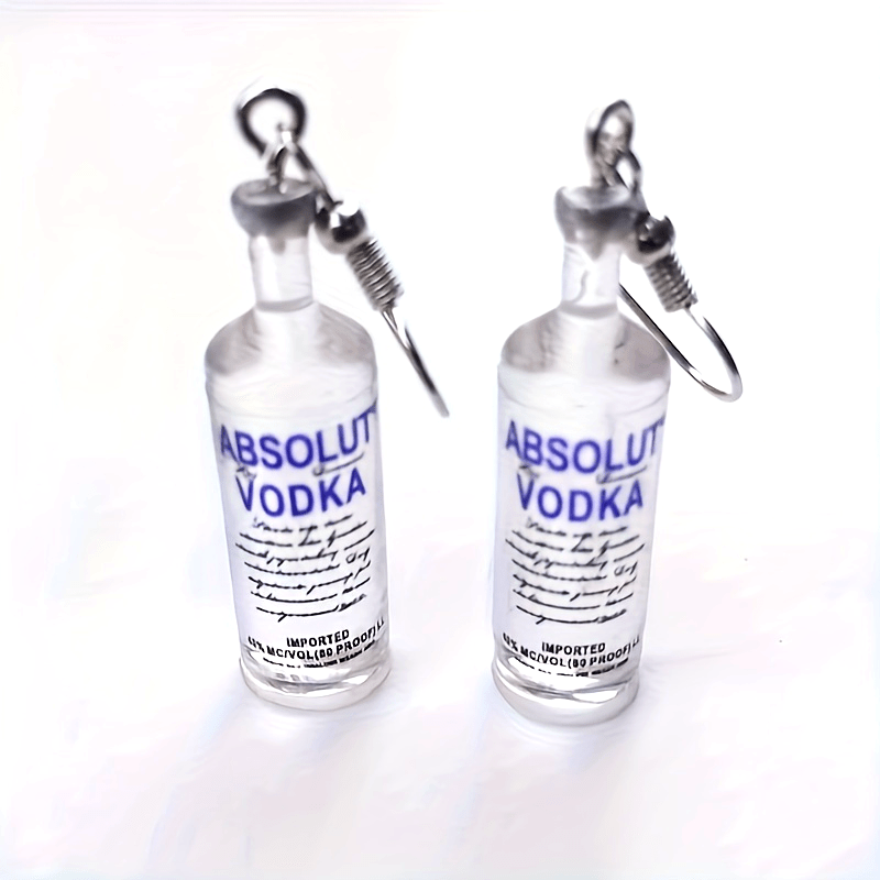 Add a touch of humor to your style with these unique ear ornaments shaped like vodka, beer, and mineral water bottles.