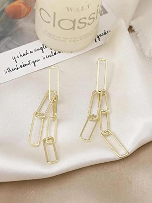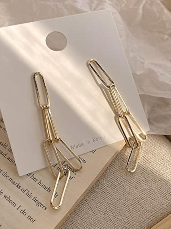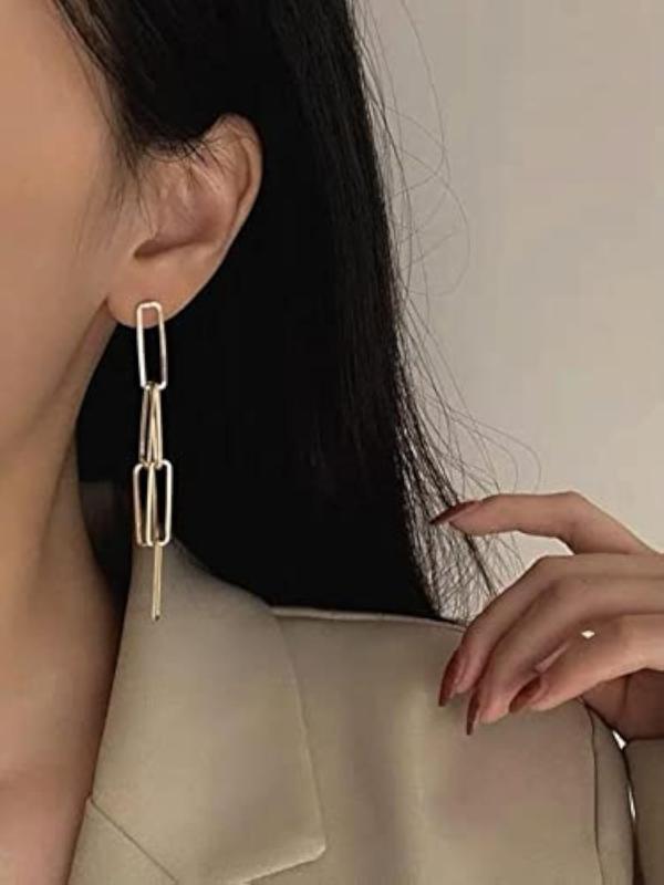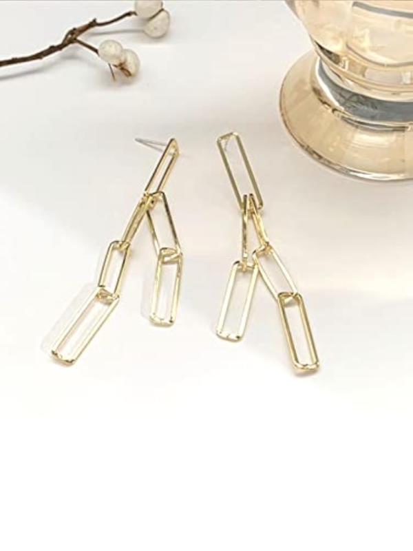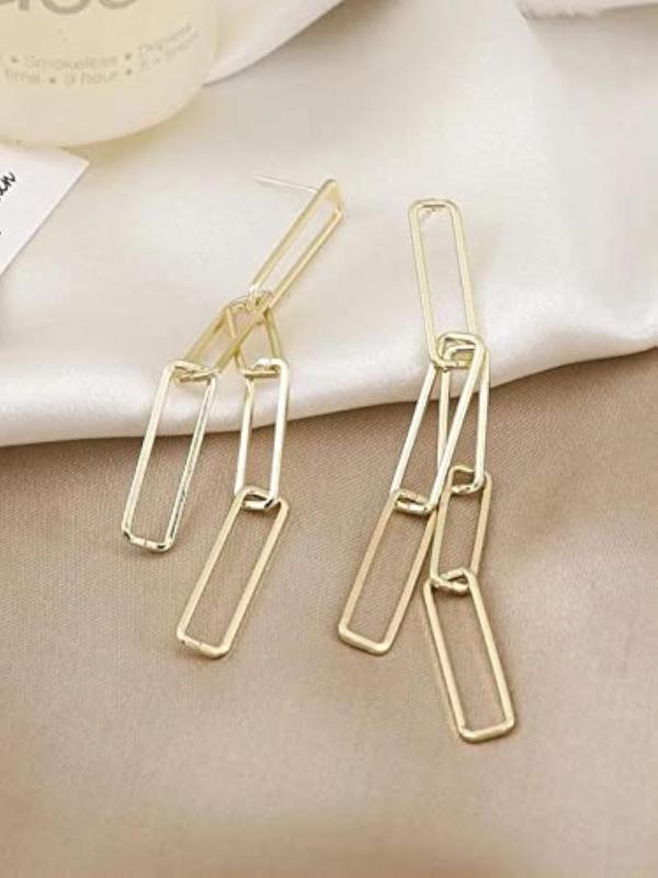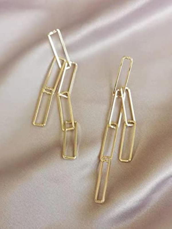 Add a touch of elegance to your look with these plated geometric long chain dangler earrings. Perfect for anniversary gifts or to treat yourself.