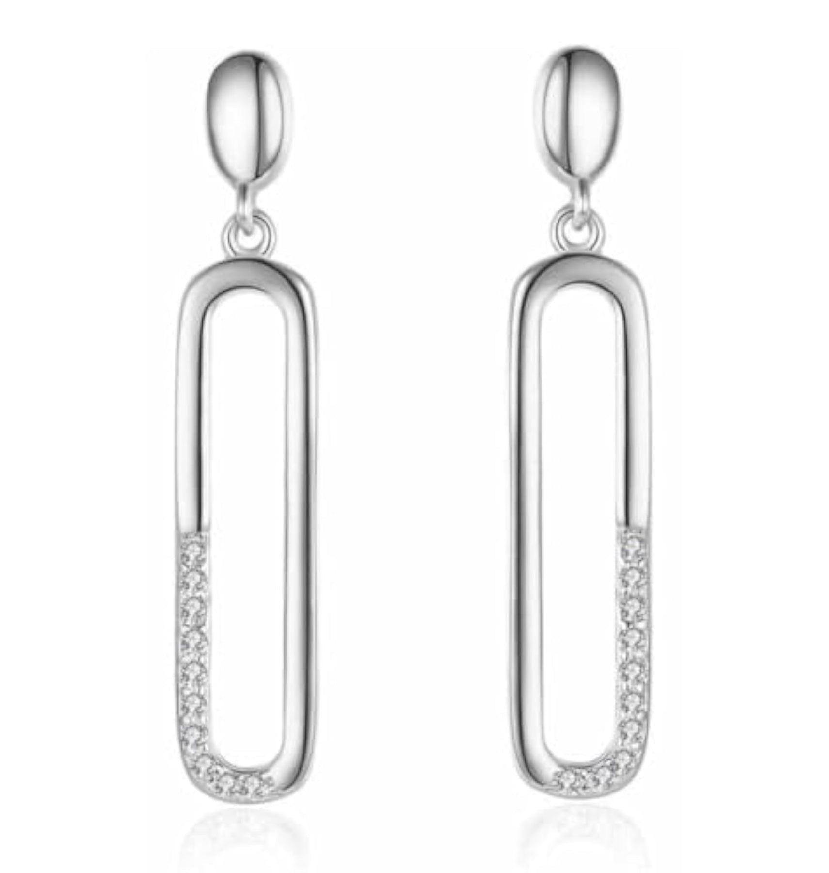 Elevate your style with these elegant Geometric Drop Earrings featuring inlaid zirconia stones. Made of hypoallergenic material that is gentle on sensitive skin. The push back closure ensures a secure fit.