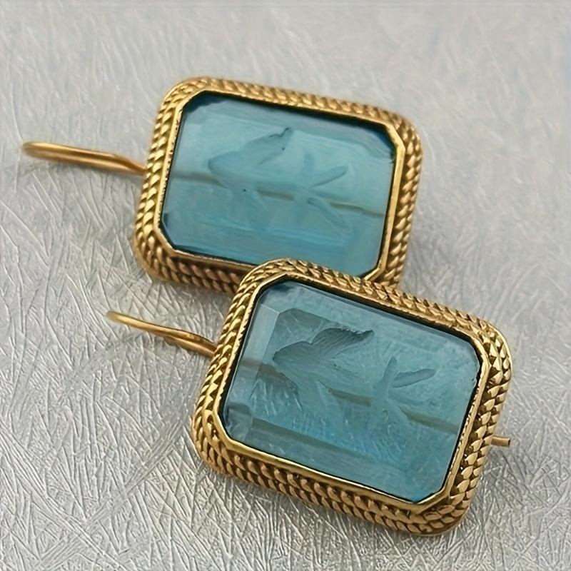 Chic geometric printed earrings with a vintage golden tone copper design and resin inlay. Ideal for daily wear or as holiday Christmas jewelry.