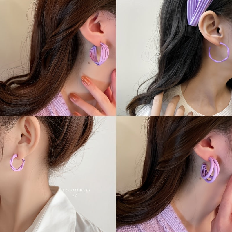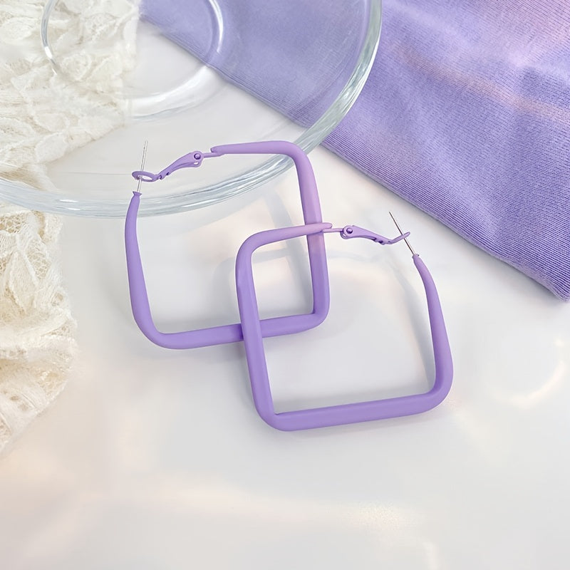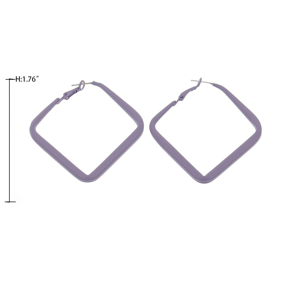 Add a touch of elegance to your look with these geometric purple hoop earrings. Perfect for daily wear or special occasions.