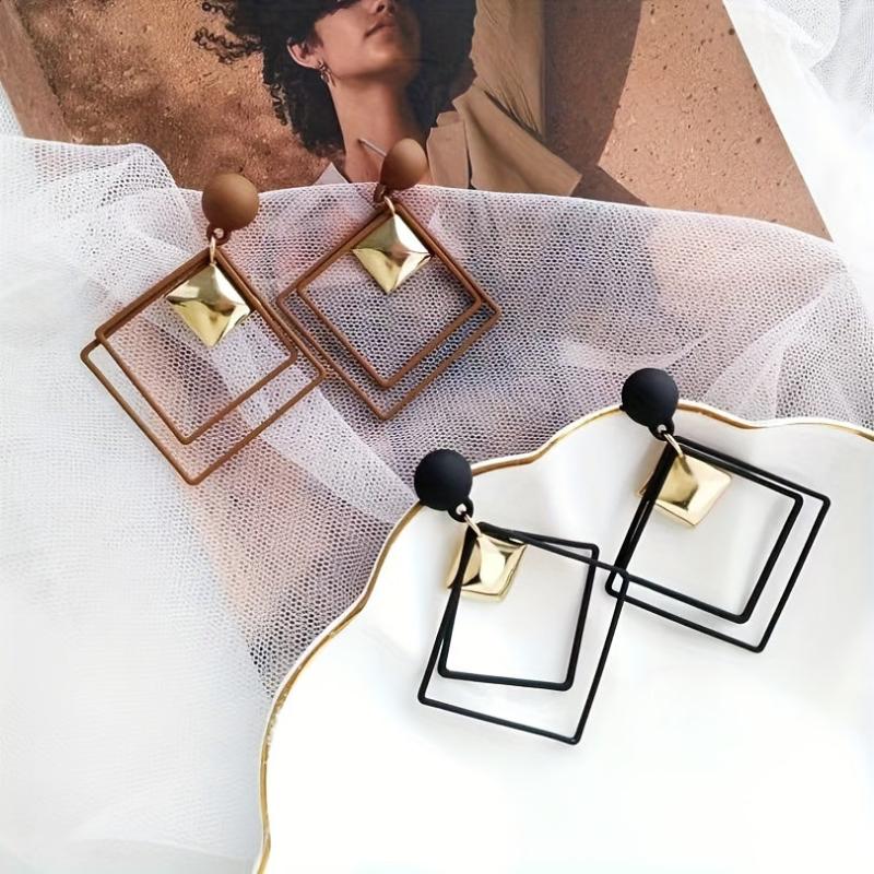 Add a touch of elegance to your look with these hollow rhombus shaped earrings. Made of metal, these abnormal square earrings are a lovely accessory to enhance your temperament and style.