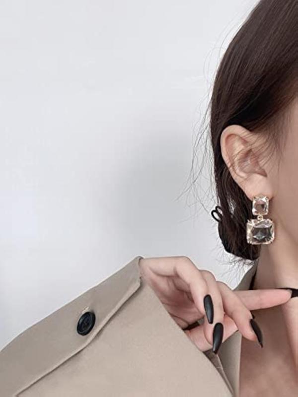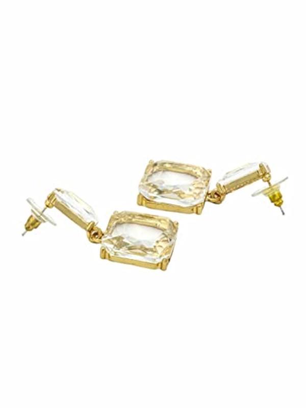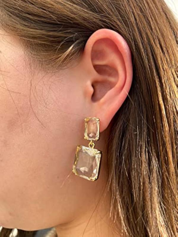 These earrings feature clear crystal geometric shapes for a chic and modern look.