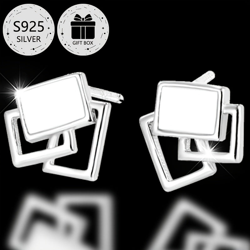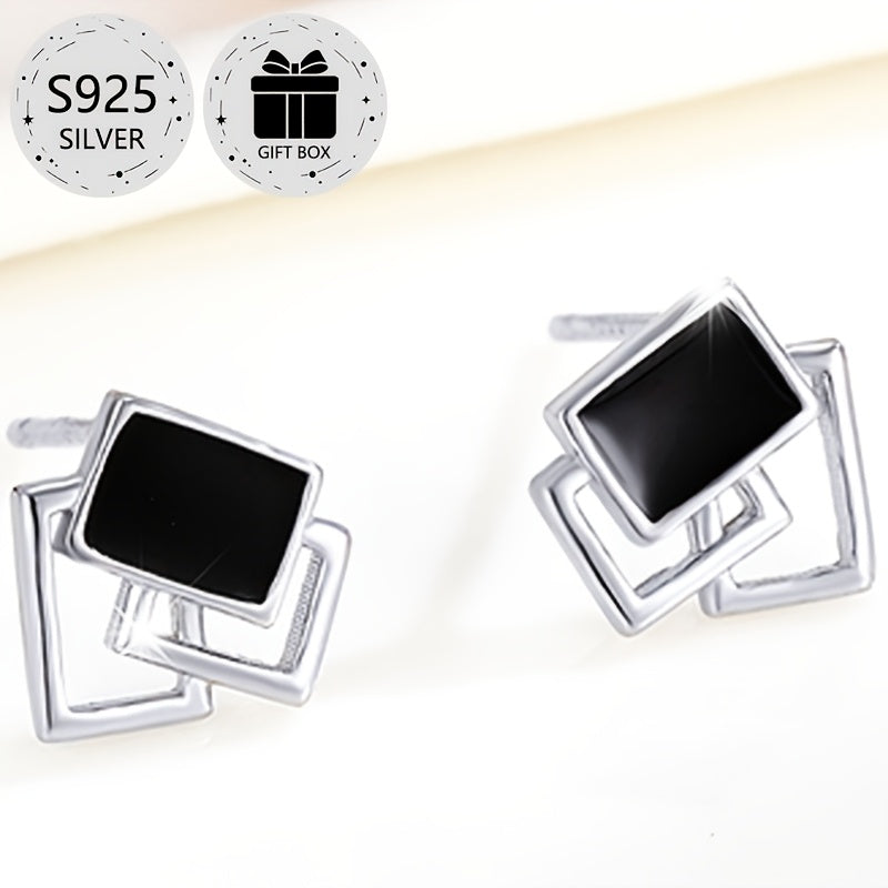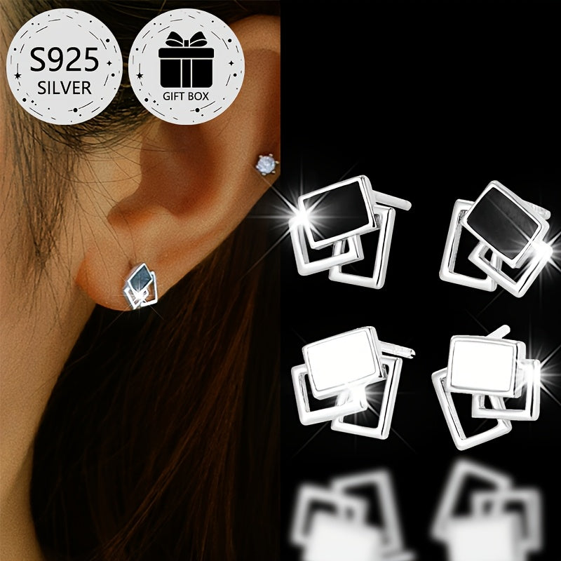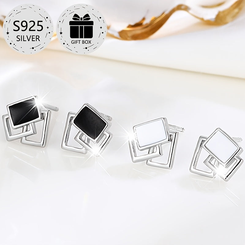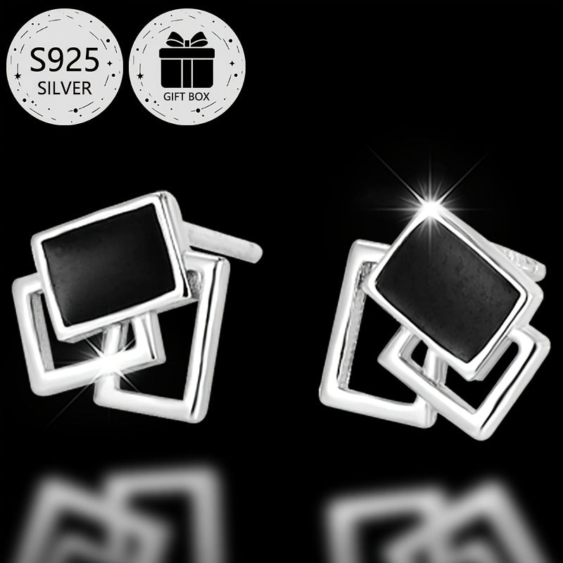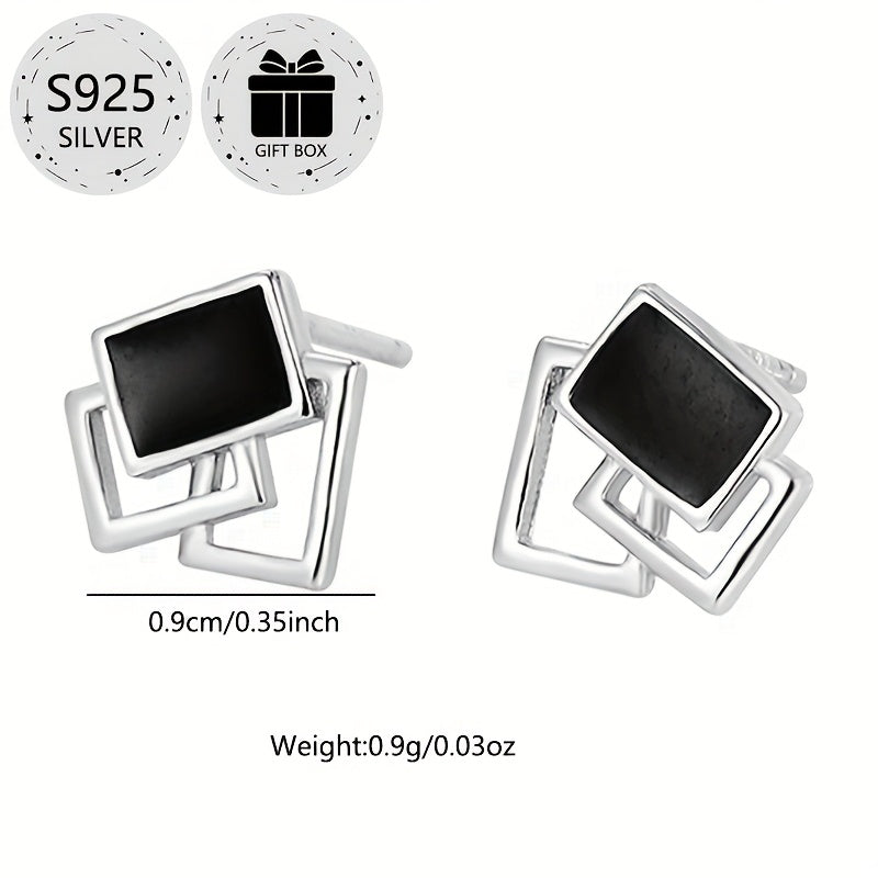 Add a touch of elegance to your look with these classic geometric square stud earrings. Made from 925 sterling silver and featuring resin inlay, these lightweight earrings are perfect for daily wear, parties, and more.