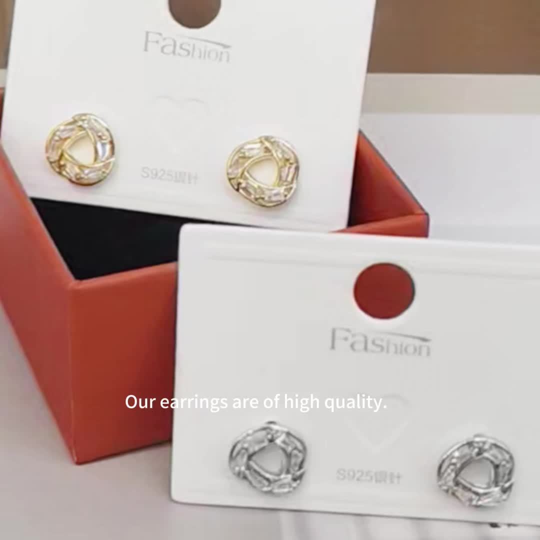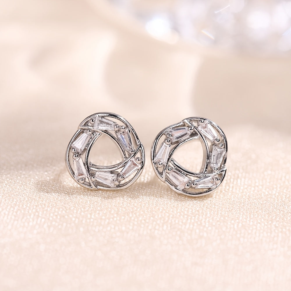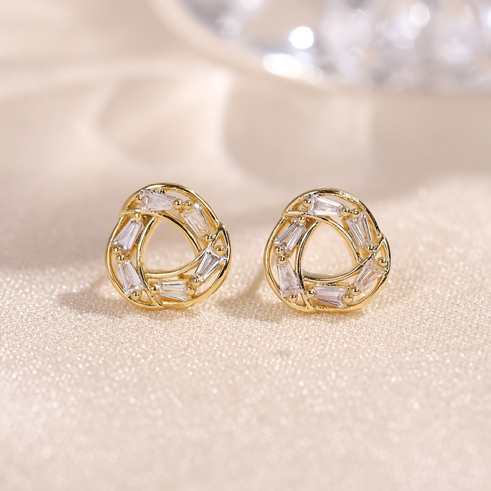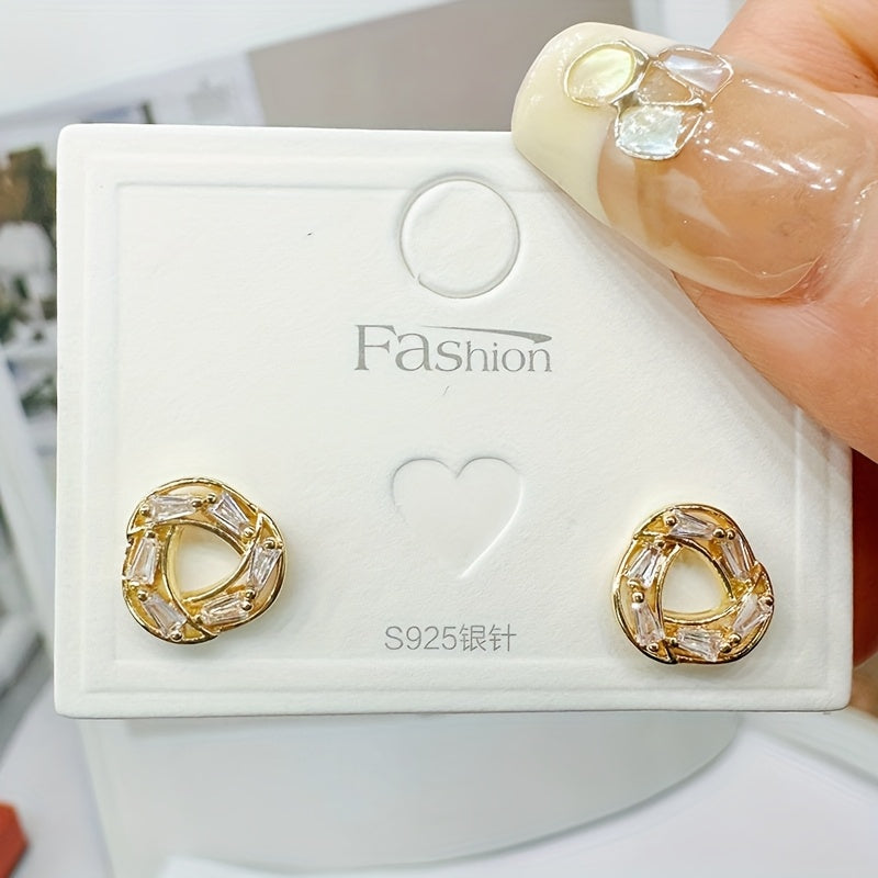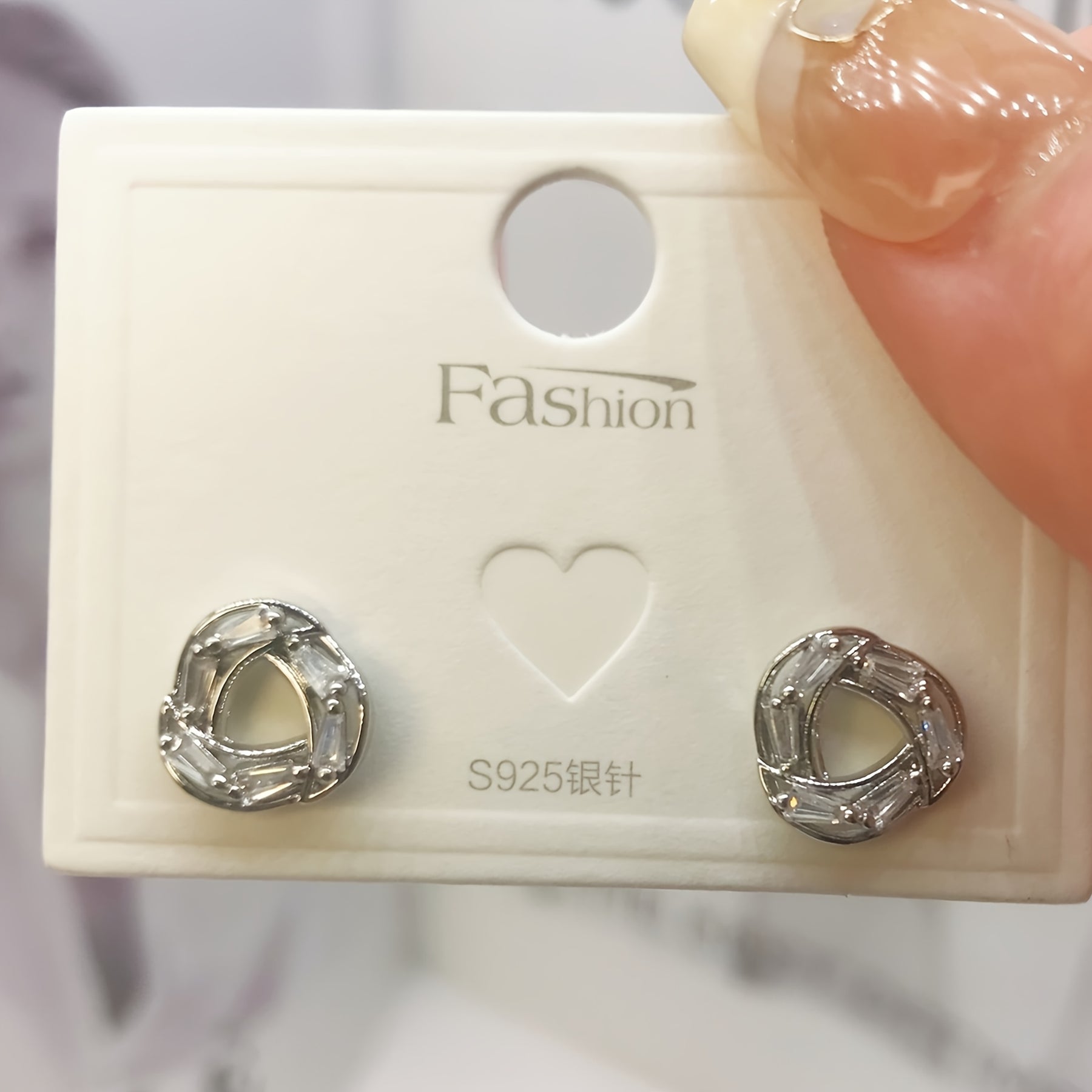 These versatile stud earrings feature a Japanese and modern style design with moissanite inlay, perfect for daily wear. Made with silver-plated copper and 925 sterling silver needle.