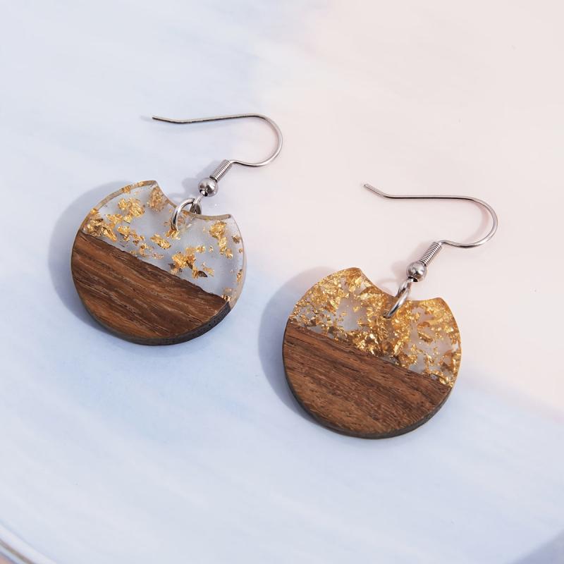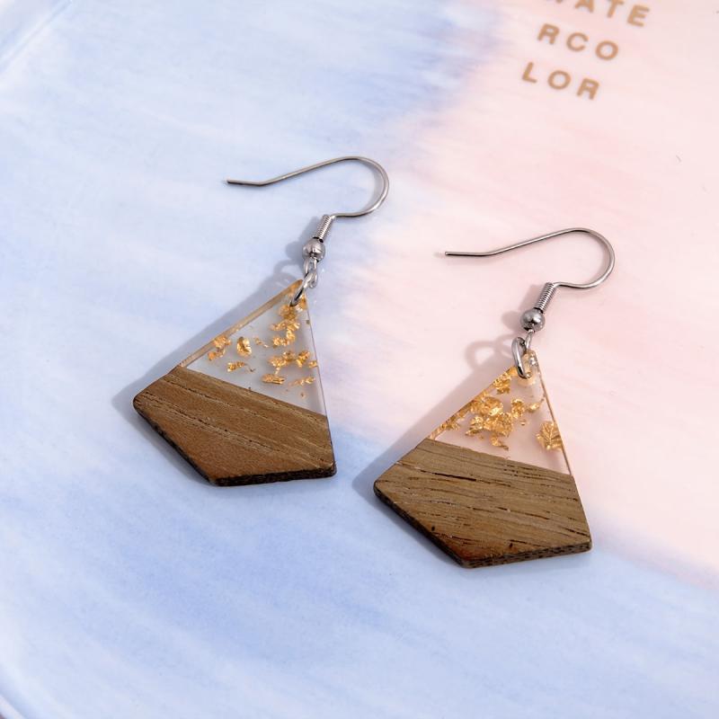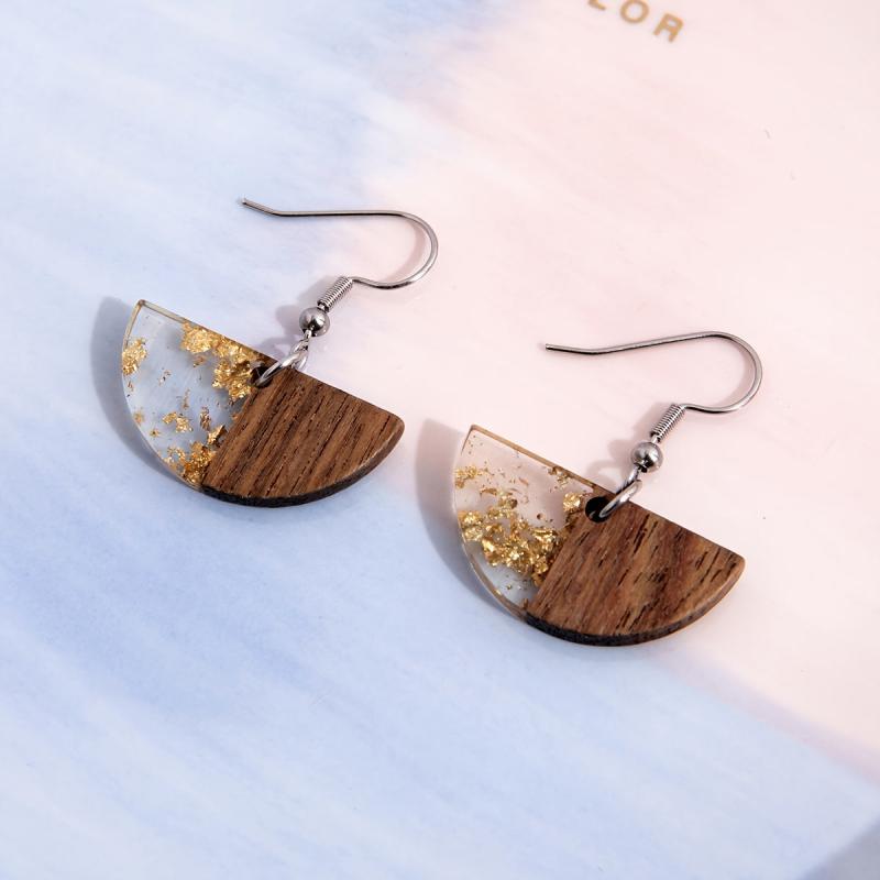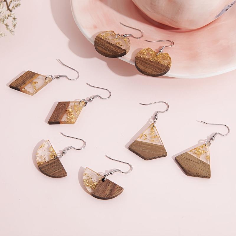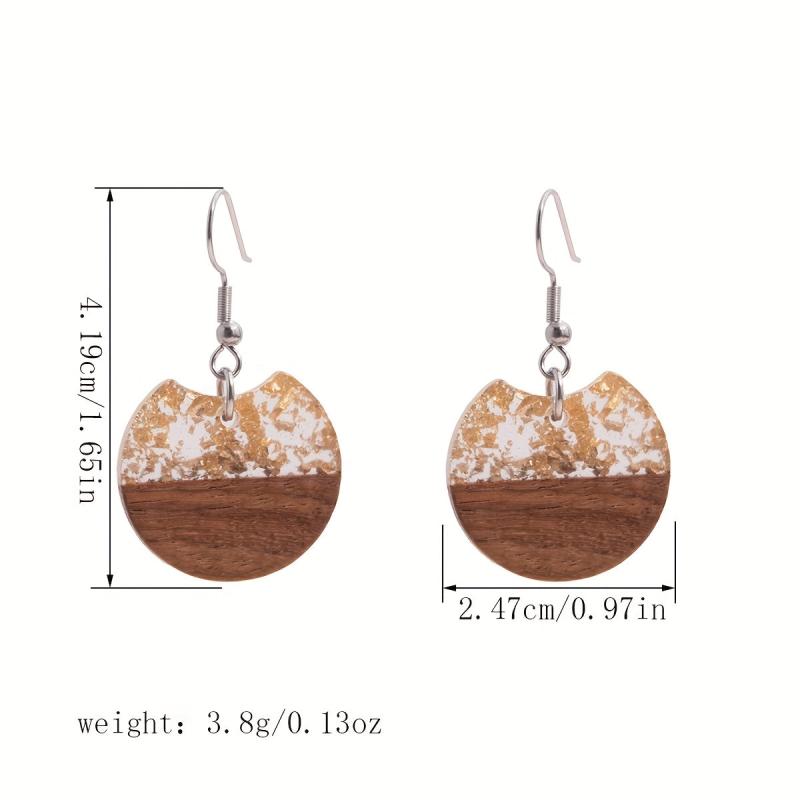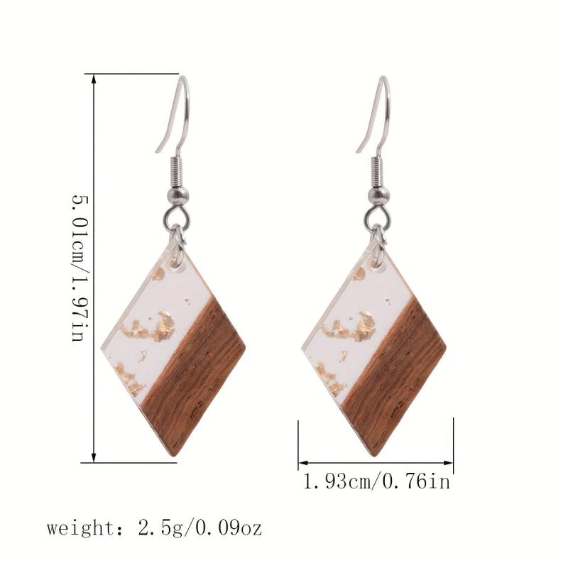 Elevate your daily or beach vacation look with these stylish geometric stitching wood resin earrings. Perfect for a bohemian style!
