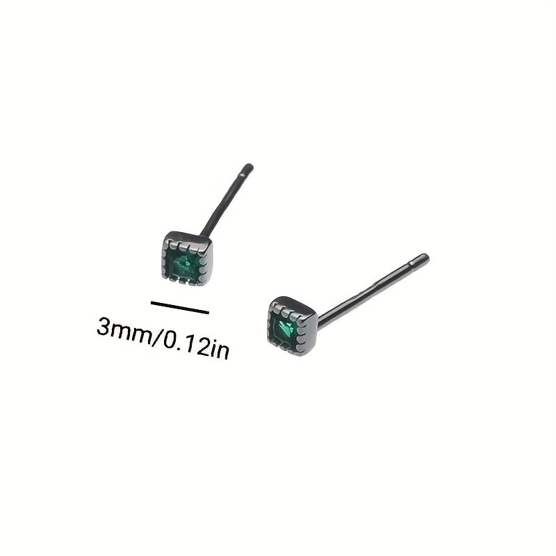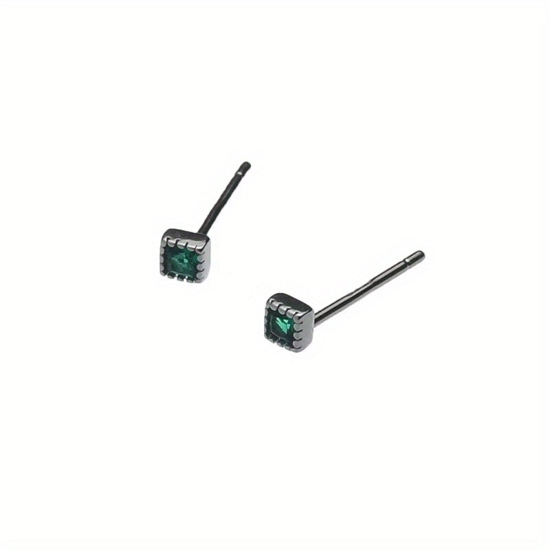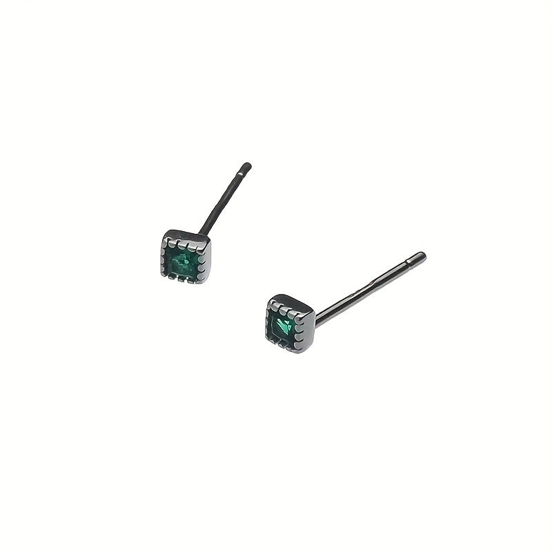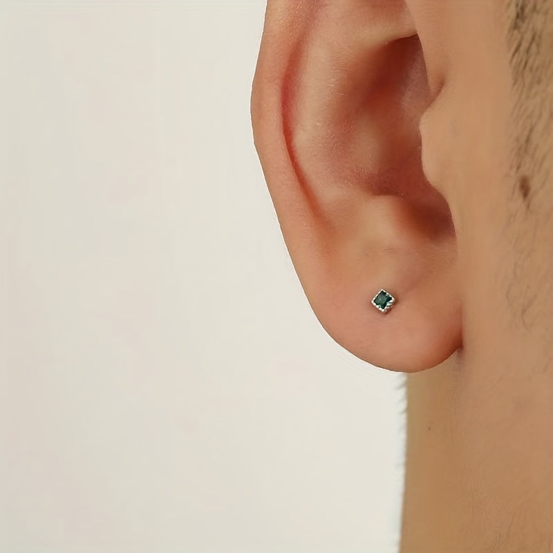 These retro stud earrings feature a geometric square design with zircon accents, perfect for men who appreciate unique jewelry.