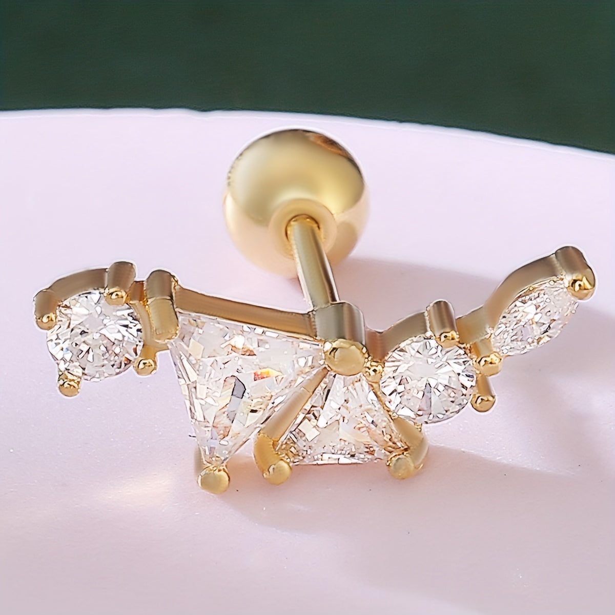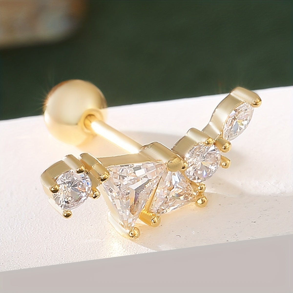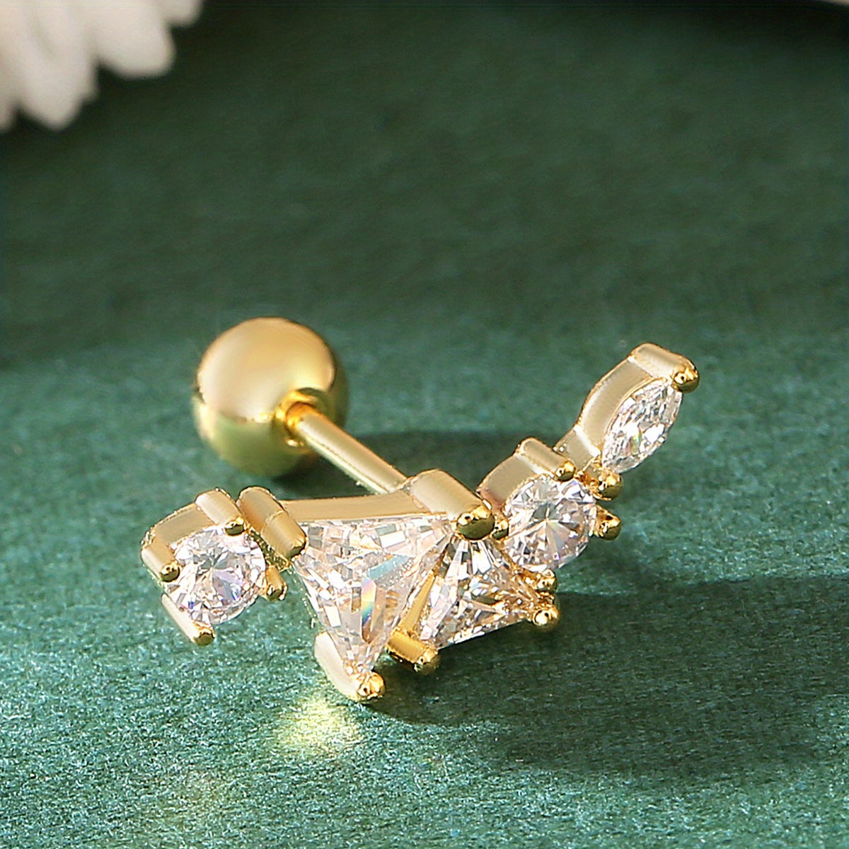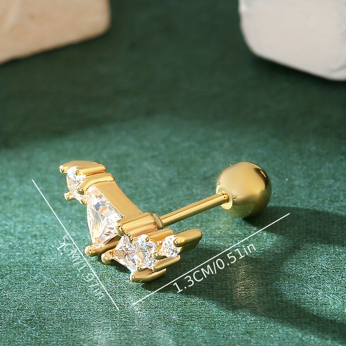 Add a touch of retro hip hop style to your look with these golden and silvery stud earrings featuring zircon decor. The earrings are made of copper and plated with 18K gold.