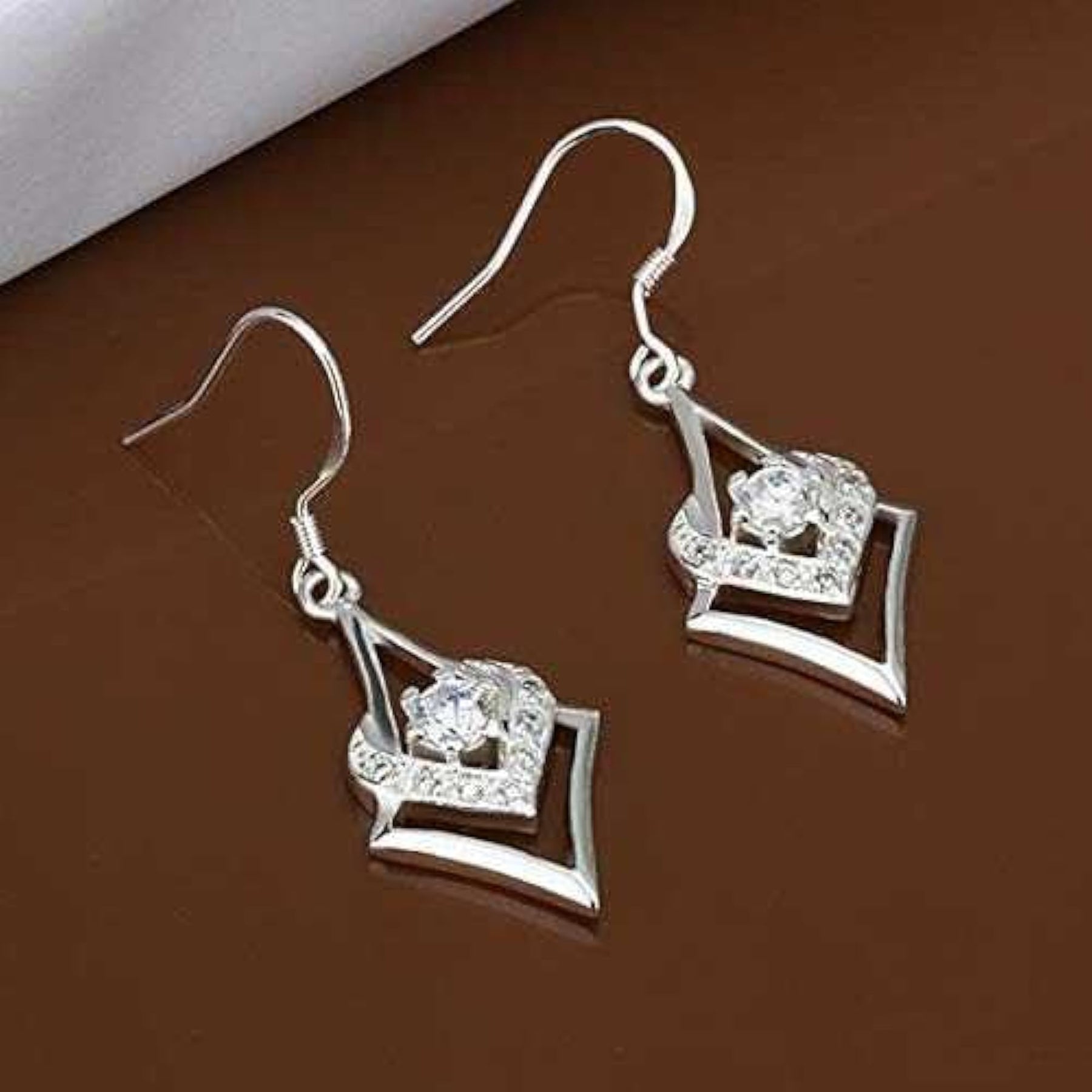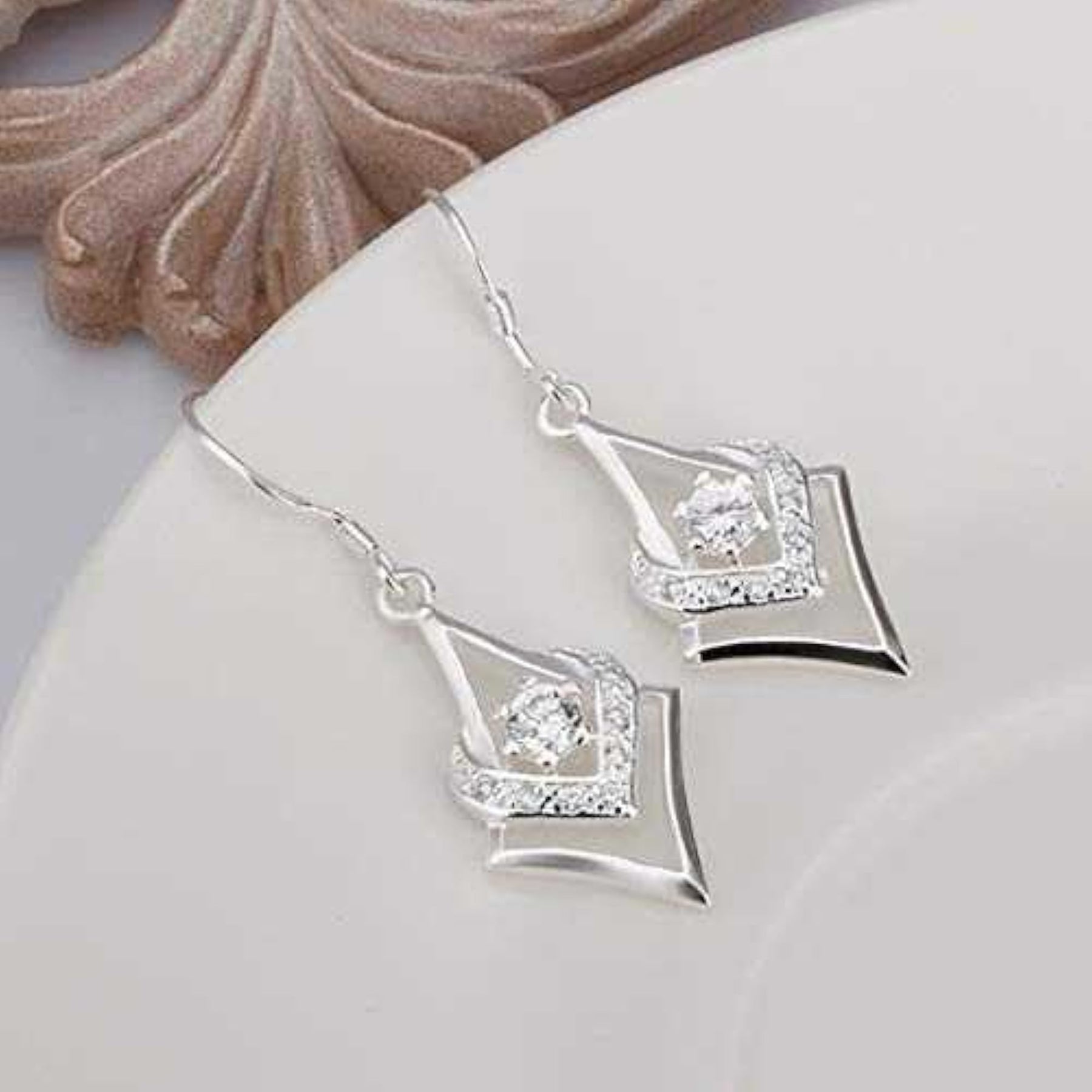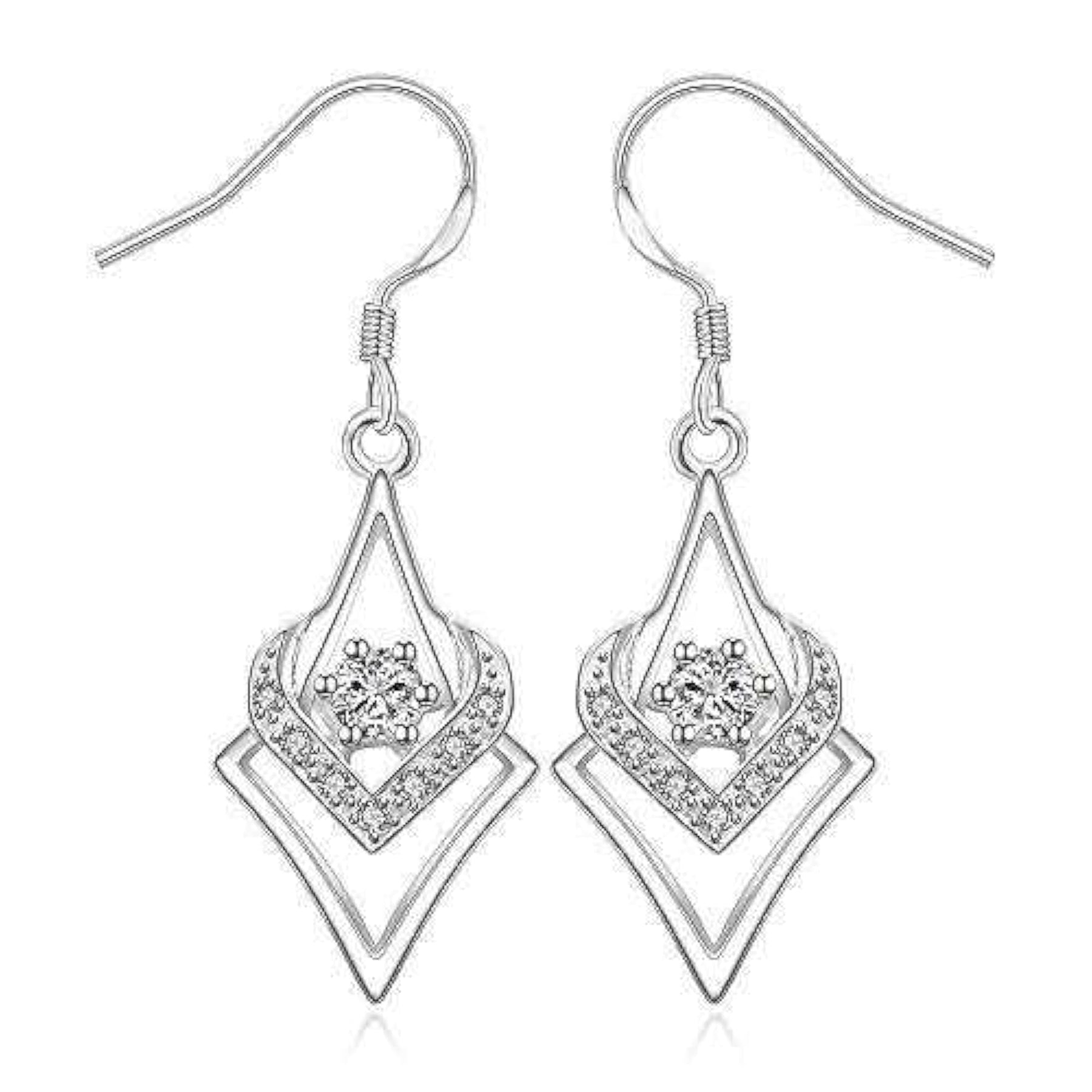 Add a touch of elegance with these geometric pattern drop earrings. Featuring zirconia embellishments and a fish hook design, this piece is perfect for any minimalist jewelry collection. The hypoallergenic studs ensure comfortable wear.